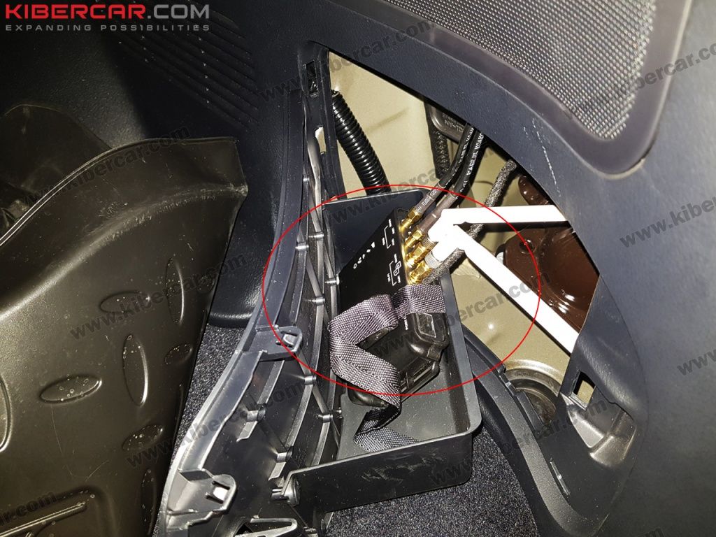 Подключение осуществлялось по технологии Pin-to-pin, поэтому никаких нареканий со стороны производителя в гарантийном случае не возникнет. Блок расположен за центральной консолью примерно там же, где находятся ноги пассажира, однако самого устройства не будет видно – все скрыто за обшивкой.