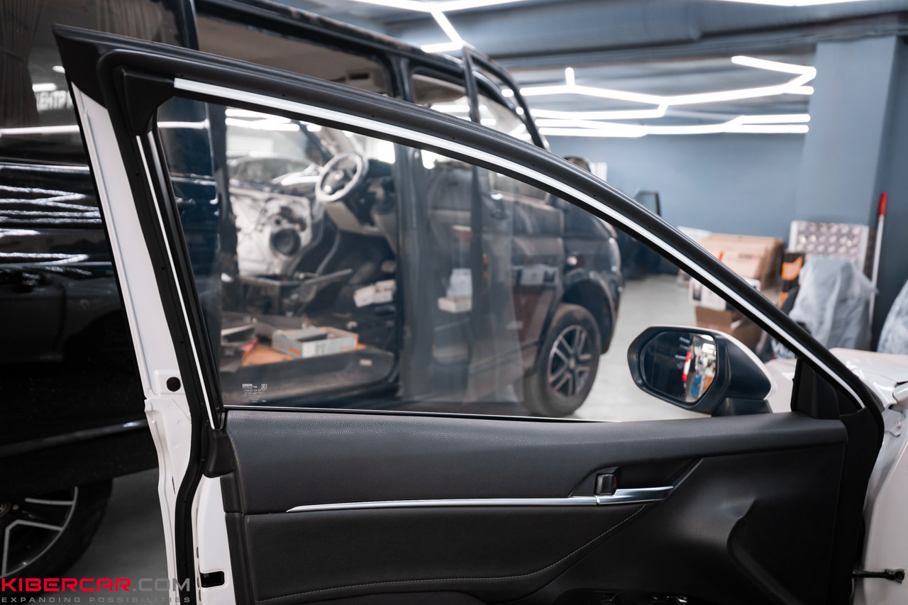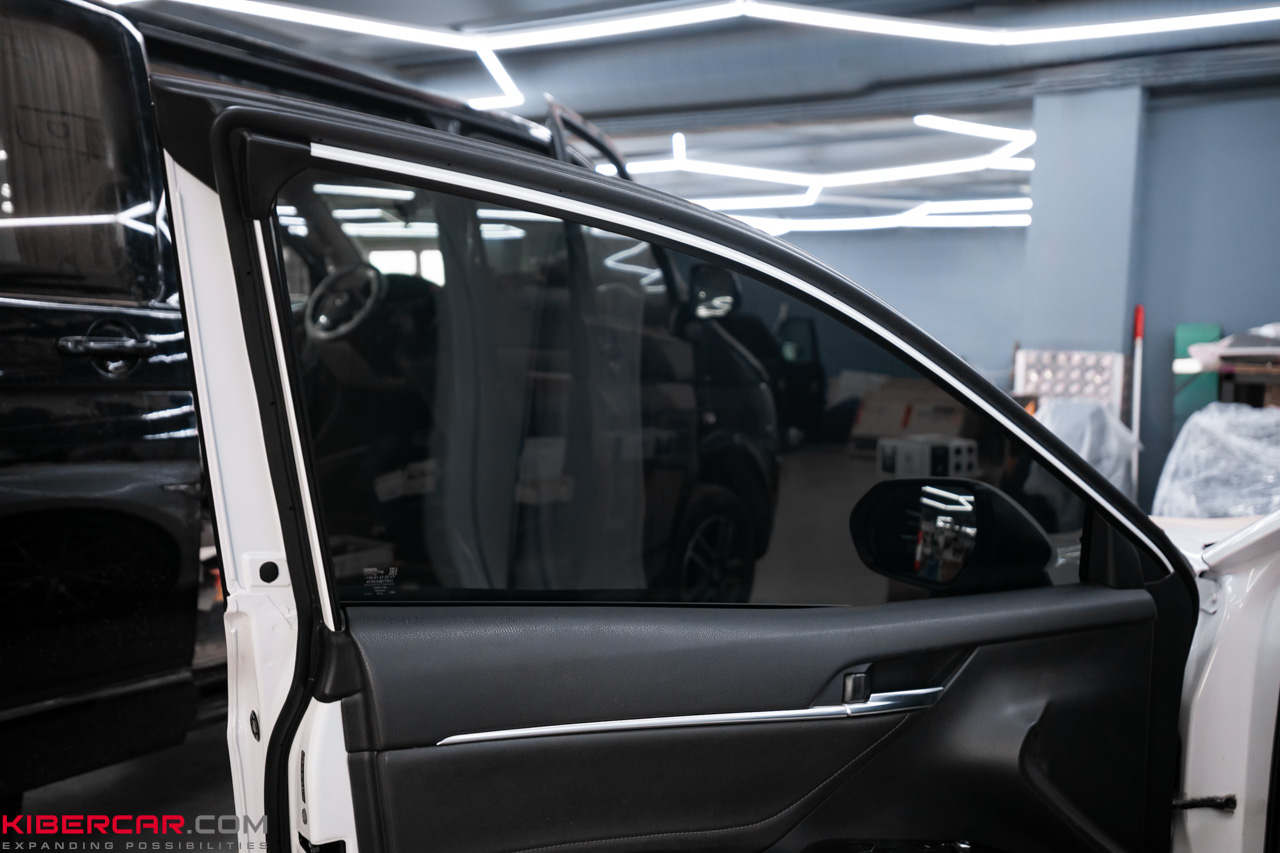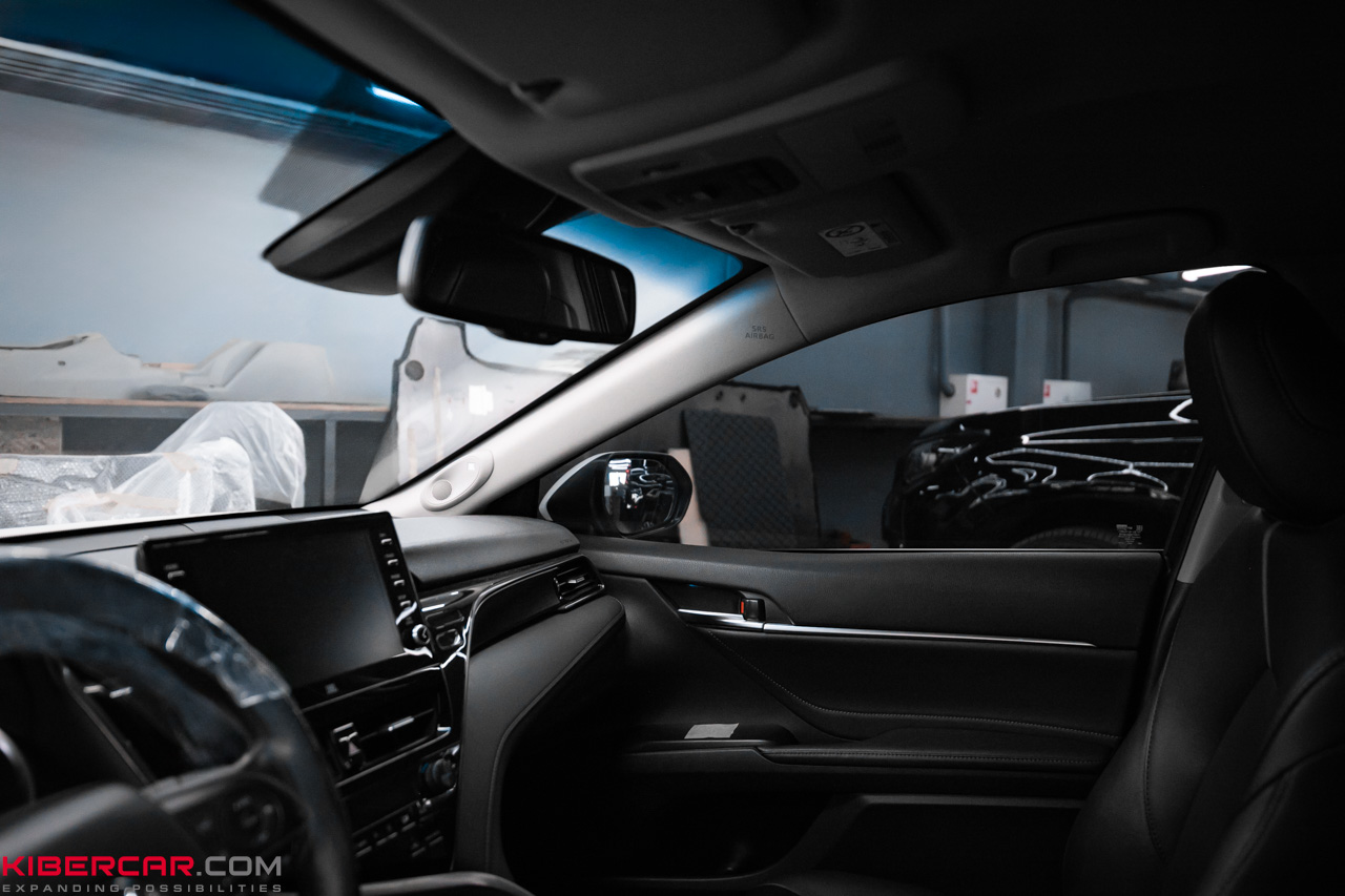 Недавно мы работали над таким проектом и подобрали комплект Onglass для Toyota Camry V70. С этим проблем не возникло, но в процессе демонтажа старых стекол пришлось убрать и старые кронштейны. Новые кронштейны мы установили в штатные места и закрепили триплекс. После этого подключили питание и проверили работу электротонировки: убедились, что степень затемнения стекол теперь можно регулировать.