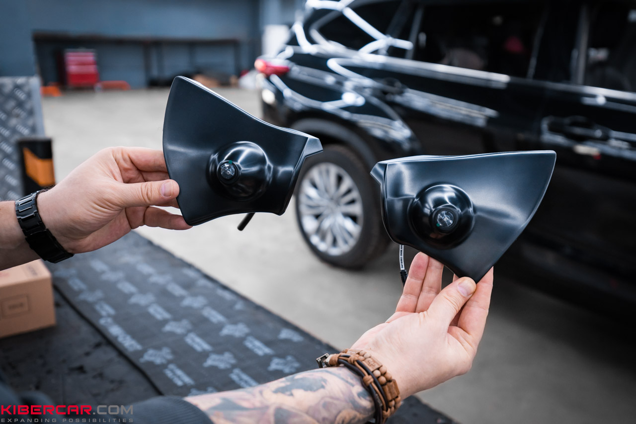 Заказчик выбрал систему 360 ультра. Это комплект из 4-х камер – передней, задней и двух боковых, интегрированных в специальные корпуса. Поэтому для установки нам не нужно ничего сверлить или дорабатывать, достаточно заменить штатные детали на новые. Комплект изготавливается индивидуально, с учетом дизайна и конструктивных особенностей конкретного автомобиля.