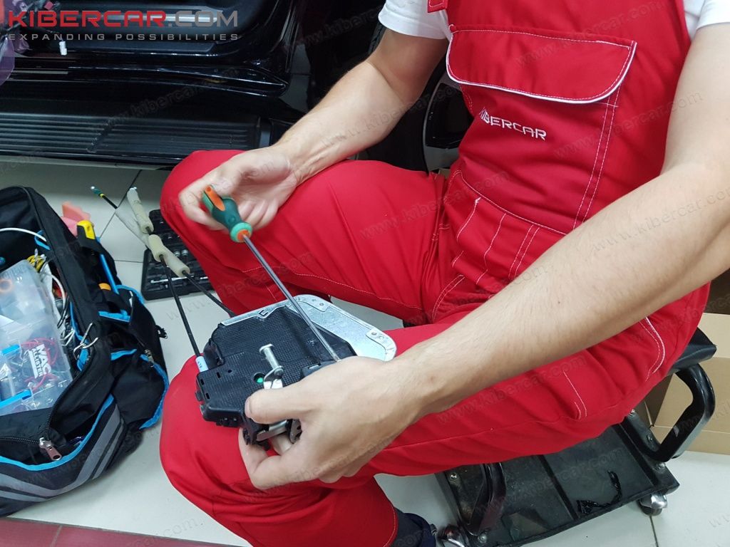 После этого мы вынимаем старый замок и заменяем одну его часть на наши доводчики с помощью технологии Pin-to-Pin (разъем в разъем). Мы не делаем дополнительных сверлений в кузове, поэтому официальные диллеры Вам не будут говорить о гарантии.