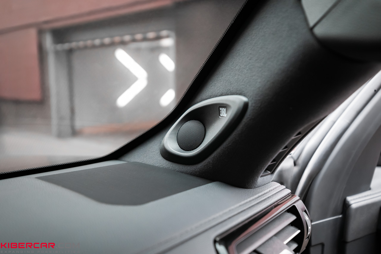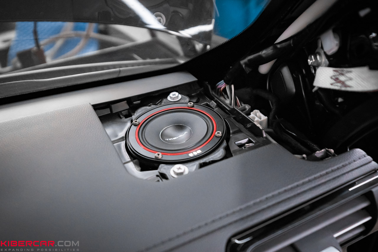 В передней части салона разместили 8-дюймовые мидбасы Dego Powerline PO 8.0 MW. Они обладают сочным басом и раскрываются в 3-полосной аудиосистеме на все 100%. В торпеду поставили 3-дюймовые среднечастотные динамики ESB 3-й серии (серия 3000 Tremila), в передние стойки – маленькие и компактные твитеры SO Audio SO19V. Пищалки интересны тем, что из-за маленьких размеров позволяют менять направление в штатном посадочном месте, это позволяет лучше направить их на слушателей и добиться более ровного тонального баланса.