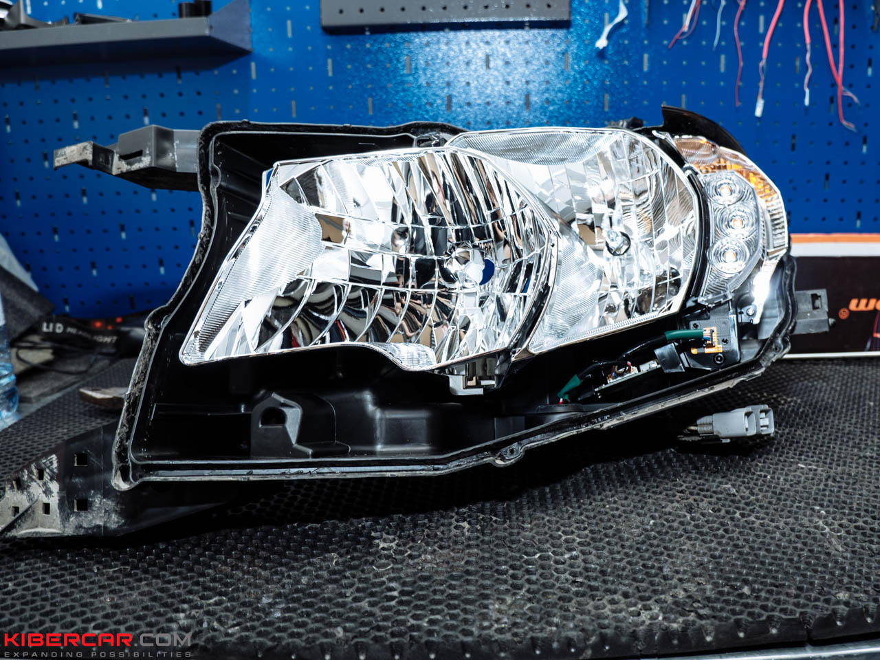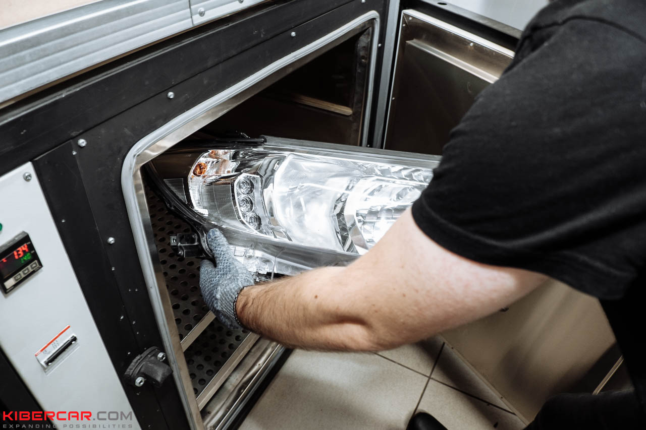 Изъяв выгоревший отражатель, мастера поставили на его место эффективные светодиодные модули. Для демонтажа в нашем установочном центре есть специального оборудования. Фары проходят нагрев в печи, а также применяется инъекционный метод. Комплектующие отделяются без проблем.