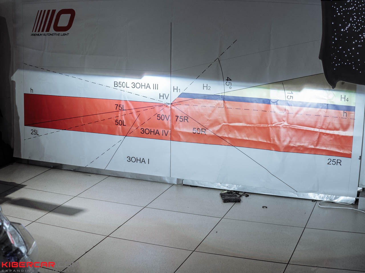 На финишном этапе производится настройка светового потока на специальным плакате с метками, нанесенными по ГОСТ. Наша команда добивается оптимального уровня освещенности, что гарантирует комфортное и безопасное движение в любых условиях.