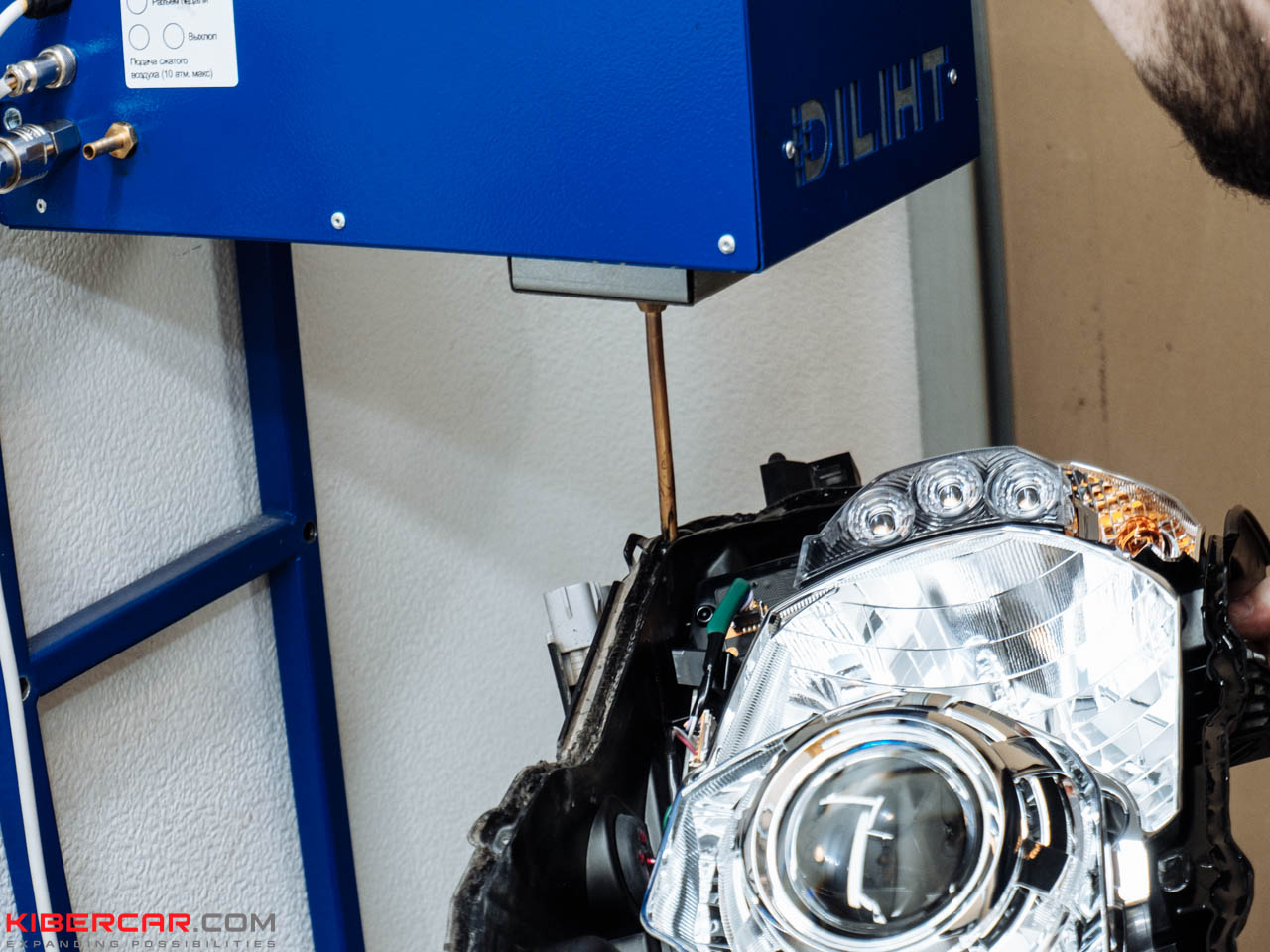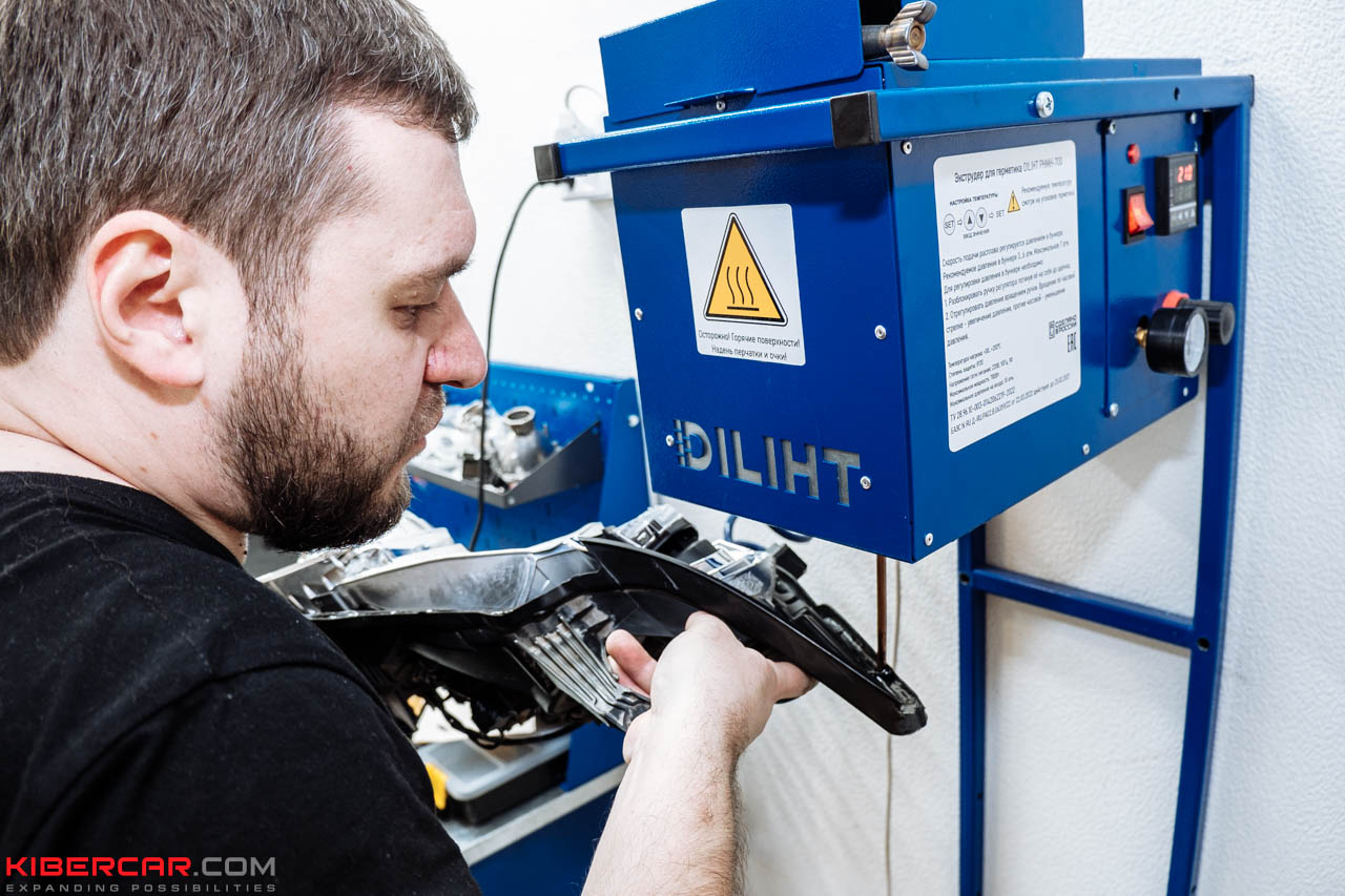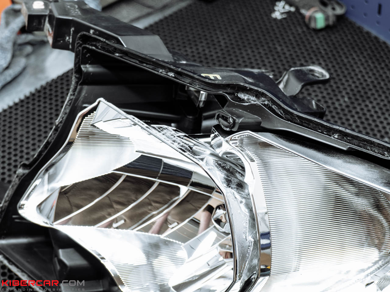 После установки нового модуля фара проходит герметизацию, для чего используется экструдер. Так нам удается избежать риска появления конденсата в будущем. После чего собираем фары и устанавливаем обратно.