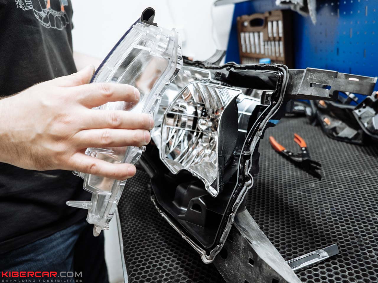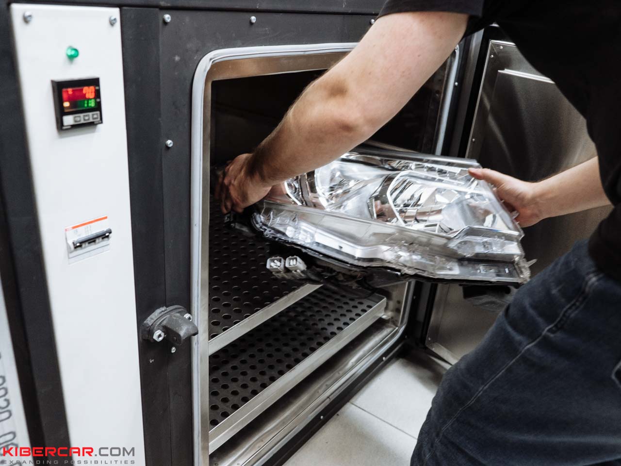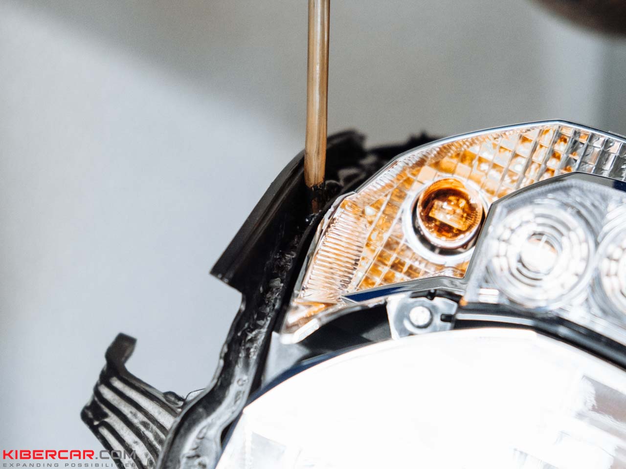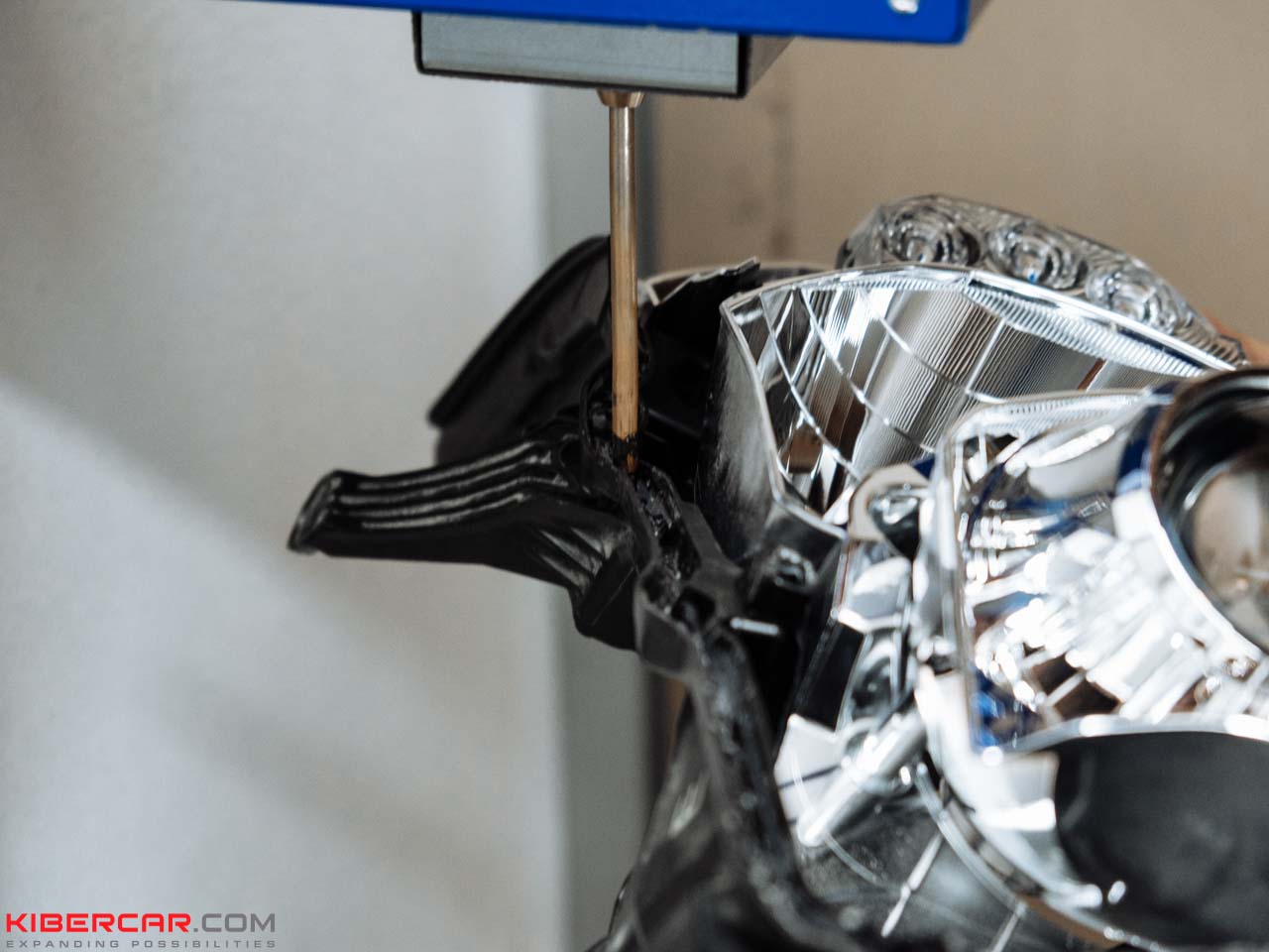 С помощью специального оборудования наши мастера производят разбор фары. Применяется метод инъекции, а также воздействие высокой температуры. Комплектующие отделяются друг от друга без повреждений. После замены отражателя на светодиодный модуль фара проходит герметизацию, для чего применяется экструдер. Так наши мастера защищают ее от возможного появления конденсата.