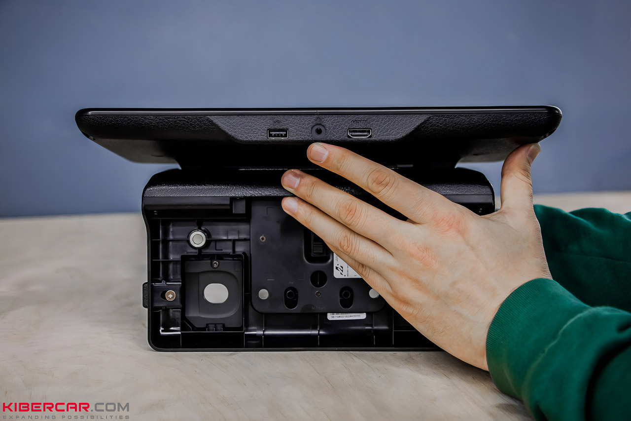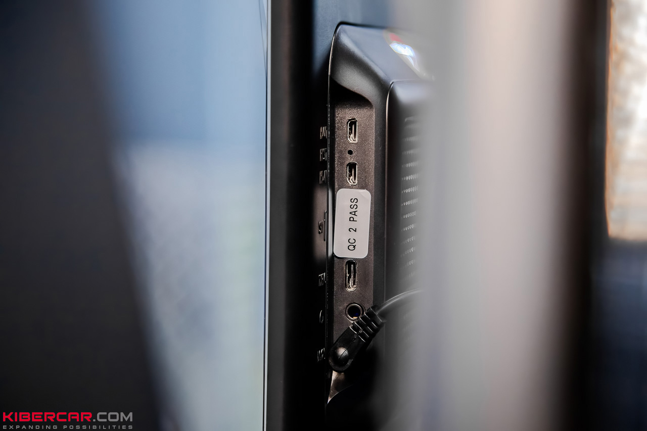 Пассажирские мониторы мы решили установить в штатные места. Они максимально органично вписались в салон, и выглядят как «родные». Но отличия от штатного оборудования существенные: размер больше, рамка тоньше. Новые мониторы съемные: при желании их можно легко потянуть на себя, и снять с креплений.