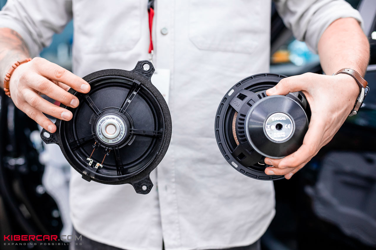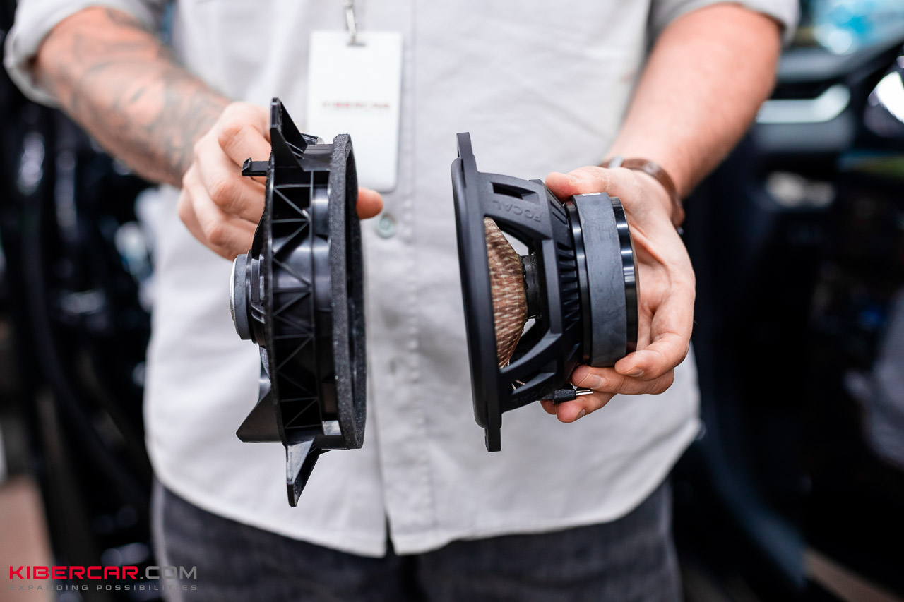 Мидбасы установили в стандартное место, внизу дверей. Для полноценного акустического оформления сделали шумоизоляцию с аудиоподготовкой дверей: это помогает убрать лишние шумы и вибрации, которые в дверях очень заметны. Чтобы динамики максимально плотно прилегали к обшивке, изготовили на 3D-принтере специальные проставочные кольца.