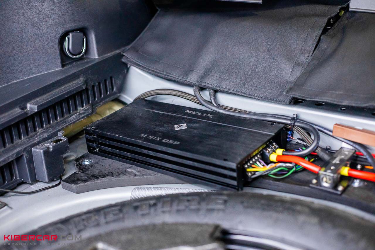 В этом проекте использовали процессорный усилитель Helix M SIX DSP – 6-канальный усилитель с 10-канальным процессором. Он обеспечивает высокую детализацию звука с низким уровнем искажений. Для сабвуфера подобрали моноблок Helix M ONE X.