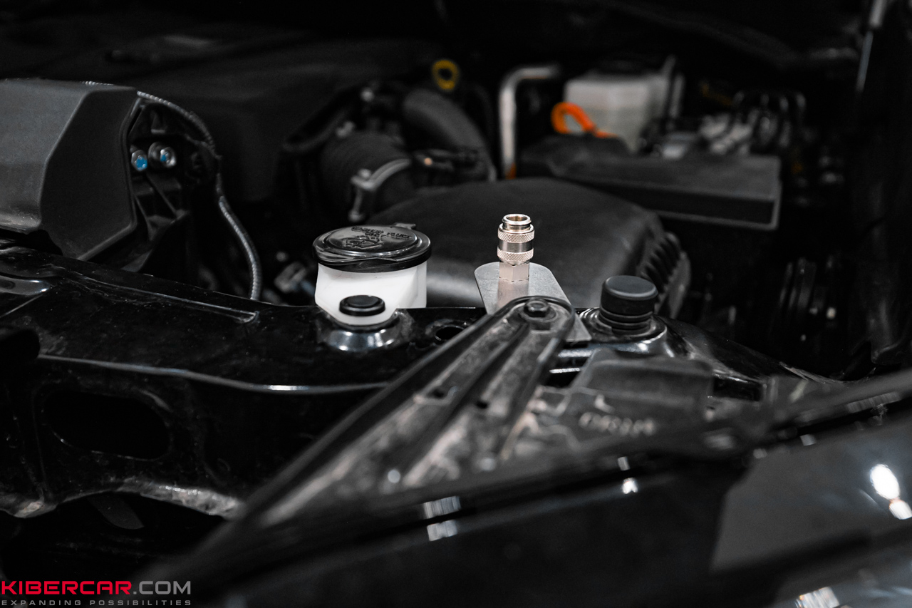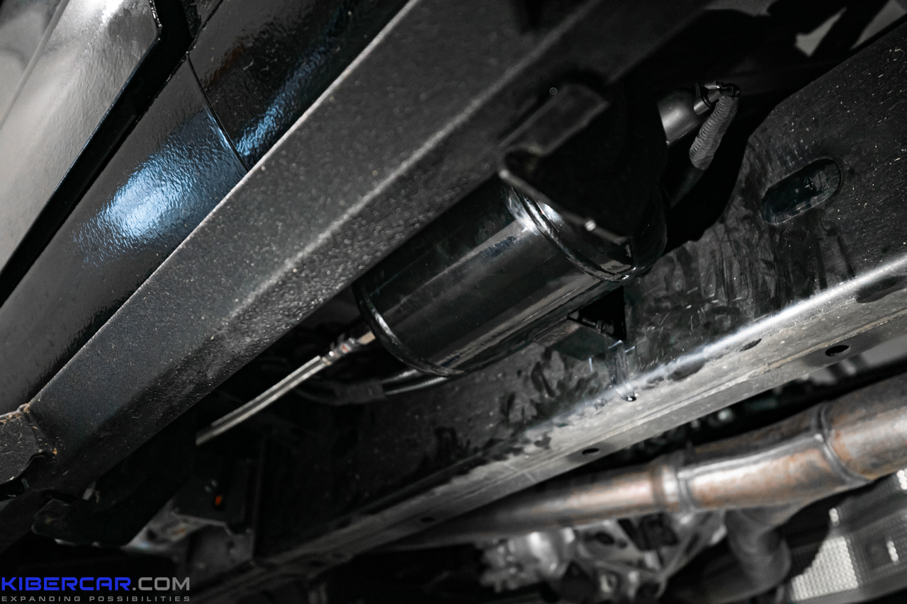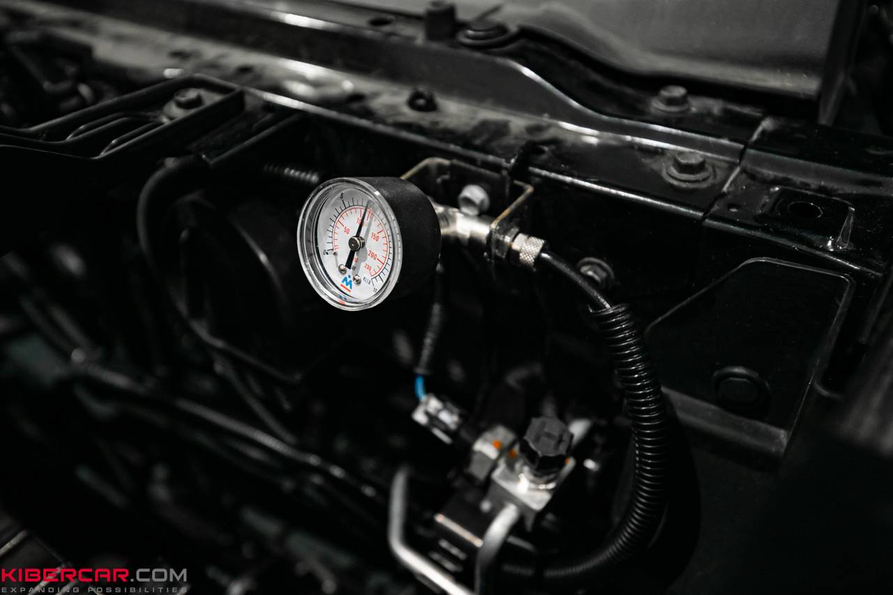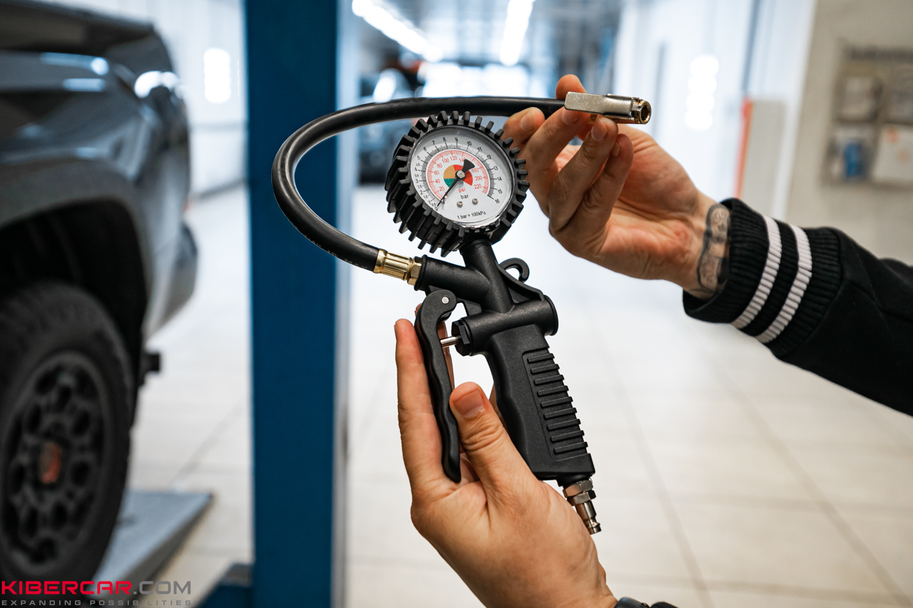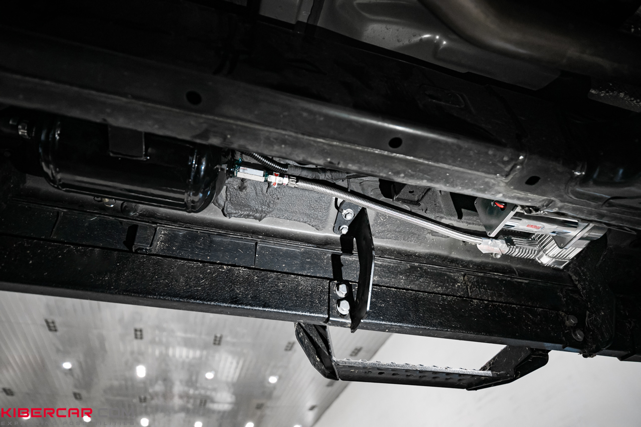 Компрессор и ресивер мастера установили под днищем машины. А под капотом появились новый клаксон и система подкачки с манометром, который позволяет контролировать уровень давления в шинах. Благодаря достаточной длине шланга, подкачать можно и передние, и задние колеса.