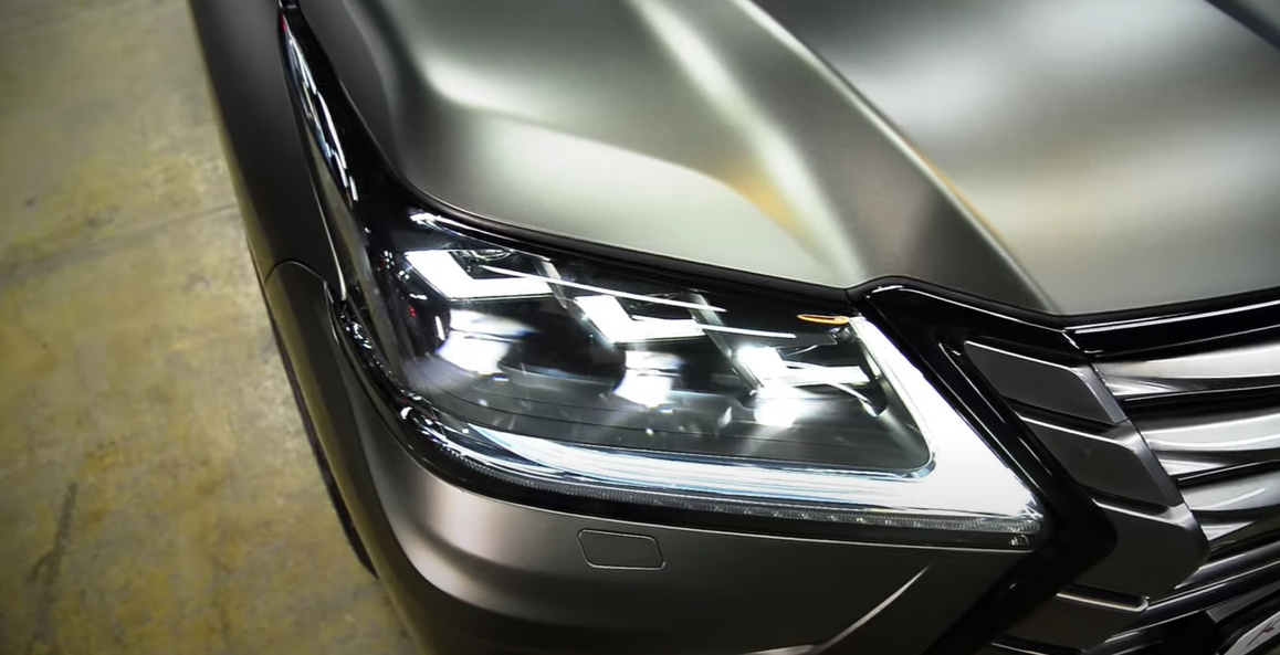 Работа с этим роскошным атво началась с фар. Мы нанесли на них бронированную полиуретановую пленку. Теперь они не только более презентабельно за счет легкой тонировки, но и сверхпрочные.