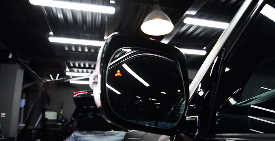 Дальнейшие работы направлены на повышение безопасности в пути. Очередное дооснащение – система мониторинга слепых зон. Мы разобрали корпус, чтобы достать зеркало, нанести гравировку и установить диод. Теперь водителя о появлении транспортного средства будет моментально оповещать оранжевый индикатор. Если при обгоне или смене ряда появится помеха, он начнет мигать активнее.