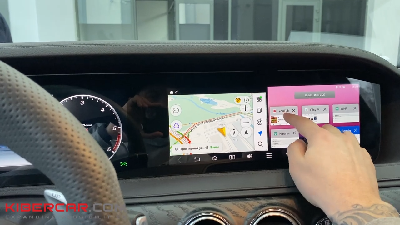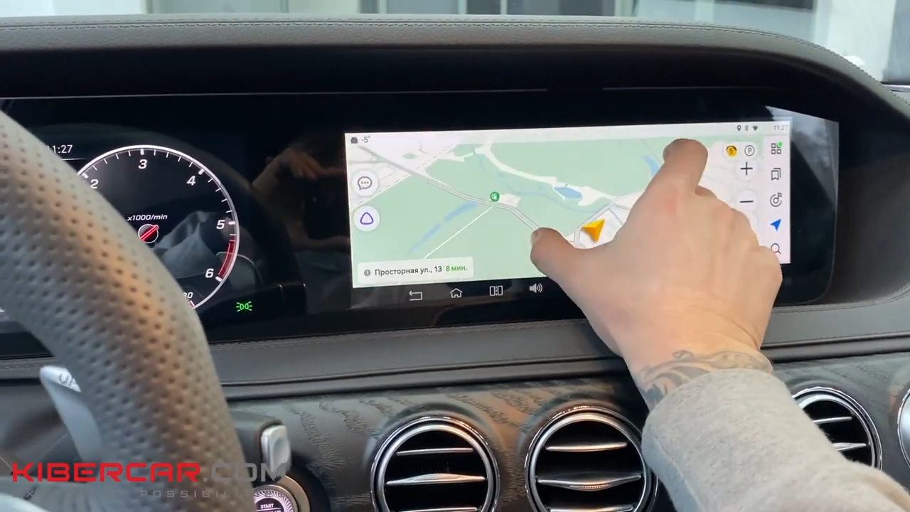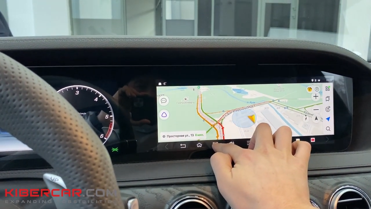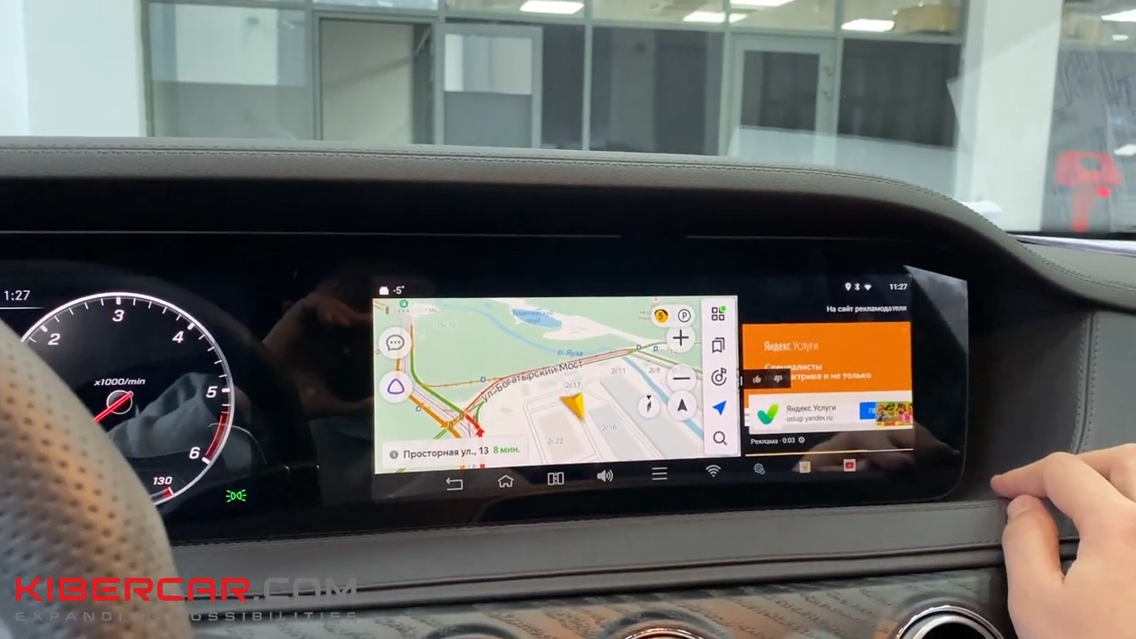Далее мы прокачали штатную систему мультимедиа и установили навигационно-мультимедийную Андроид-систему. На стандартном мониторе появилось меню Play Market с Яндекс-навигацией и прочими приложениями. Для максимально простого и удобного использования наклеили сенсорную пленку с емкостным управлением. Теперь включать/выключать приложения и пользоваться функционалом можно без помощи кнопок.