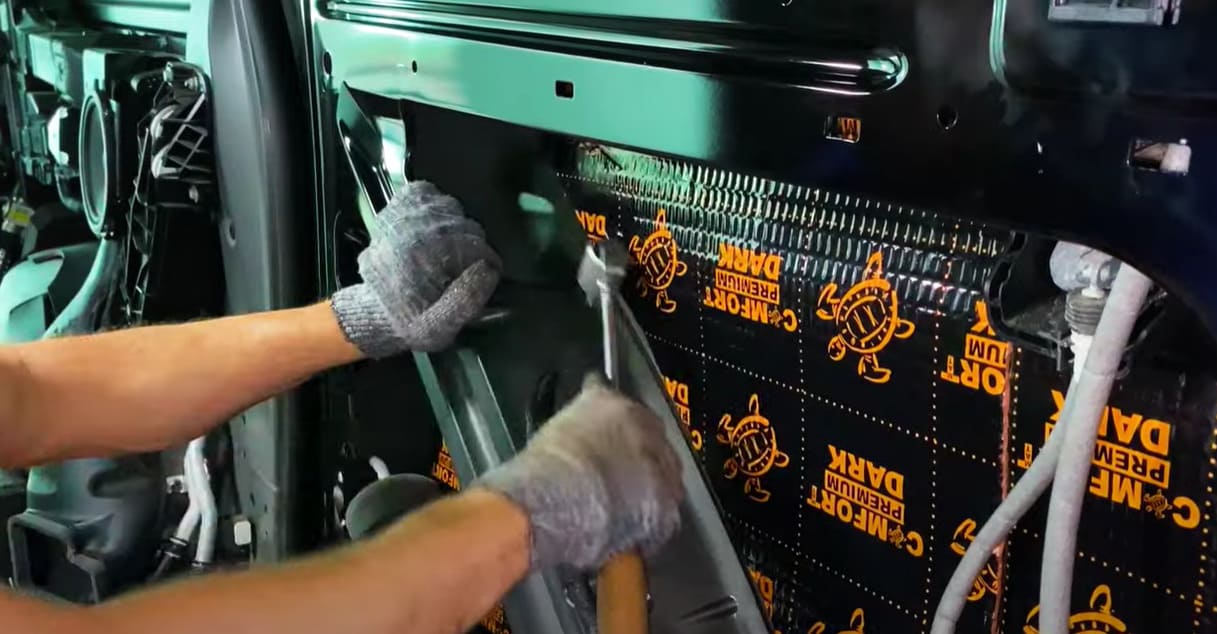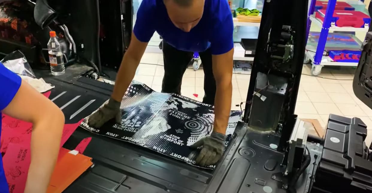 Чтобы обеспечить отличную акустику без примеси посторонних звуков, работа над дооснащением Mercedes-Benz V-class началась с полной шумоизоляции. Этим занимается специализированное подразделение нашей компании. Мы используем премиальные материалы и технологии, разработанные совместно с мировым производителем изоляции. Мастера проложили шумоизоляцией все элементы кузова: багажник, двери, салон, колесные арки.