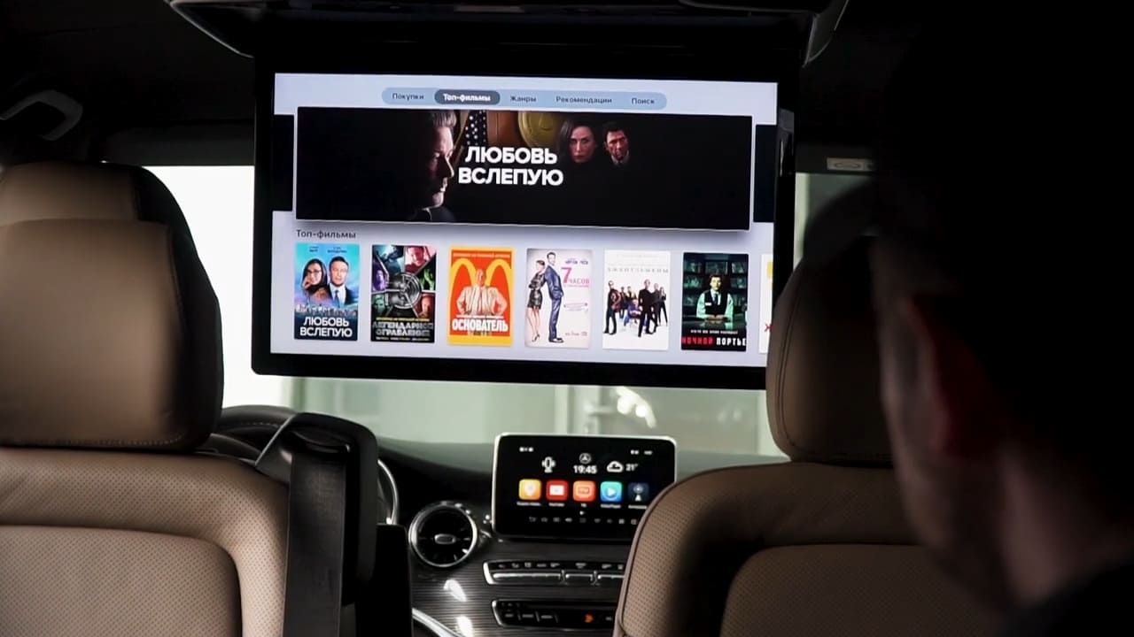 Чтобы пассажиры не скучали, мы добавили монитор с диагональю в 22 дюйма, работающий на базе ОС Android. Для него дополнительно сделали пульт, чтобы было проще управлять HDMI-выходами. Таким образом, в салоне появился полноценный планшет, на котором можно смотреть видео в высоком качестве, играть и пользоваться другими привычными возможностями. У монитора три выхода HDMI. Пассажиры могут подключать игровые приставки, смотреть Apple-TV или использовать съемные носители.