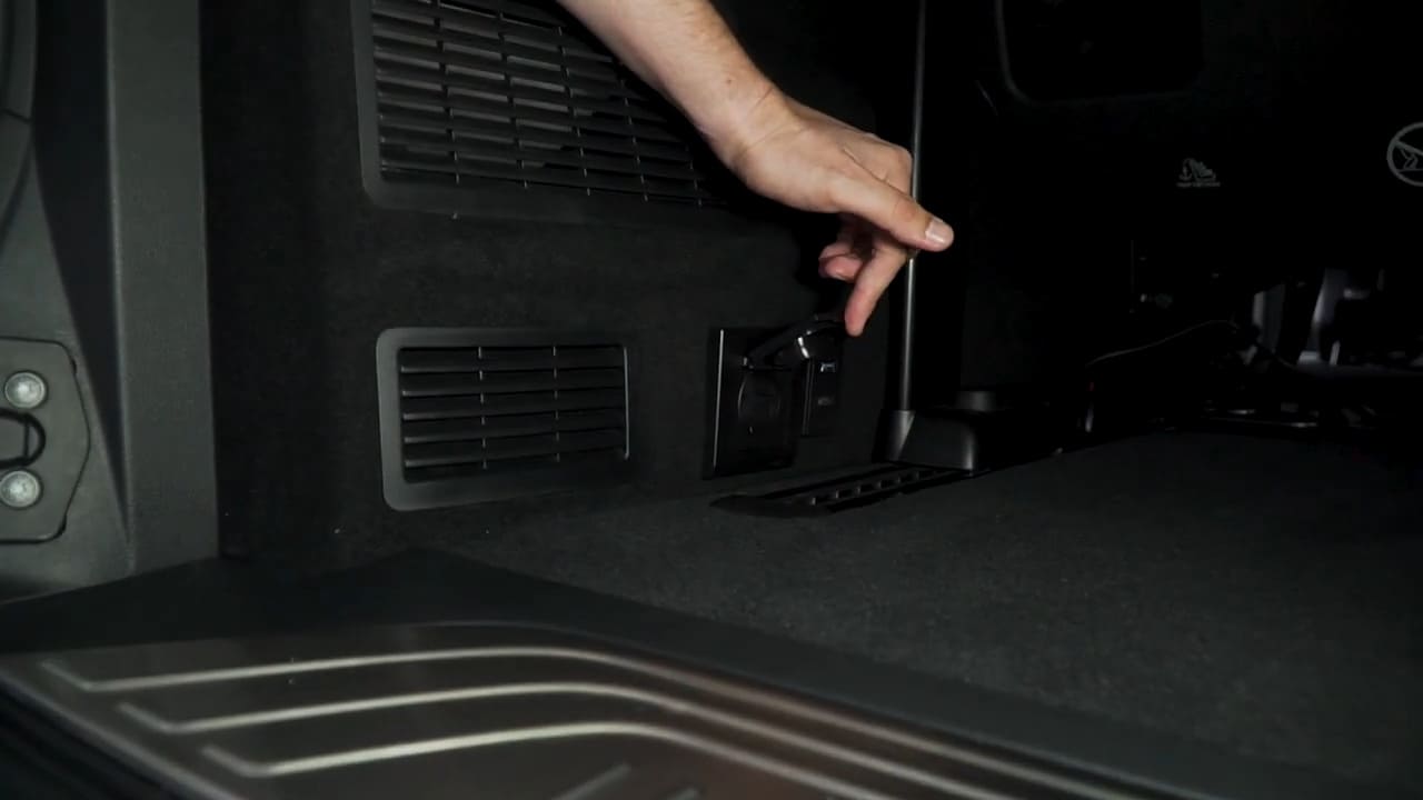 Дооснащение коснулось и багажного отделения, где разместились 2 розетки на 220 В, инвертор, который будет отвечать за напряжение в 220 В, разъемы USB и HDMI.