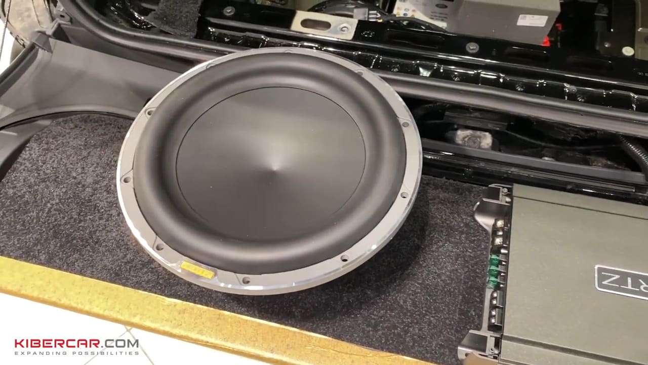 За обшивкой багажника прячется новый сабвуфер в деревянном корпусе и усилитель к нему. Устройства никак не сокращают полезного объема, надежно закрыты сеткой, следов проведения работ нет.
