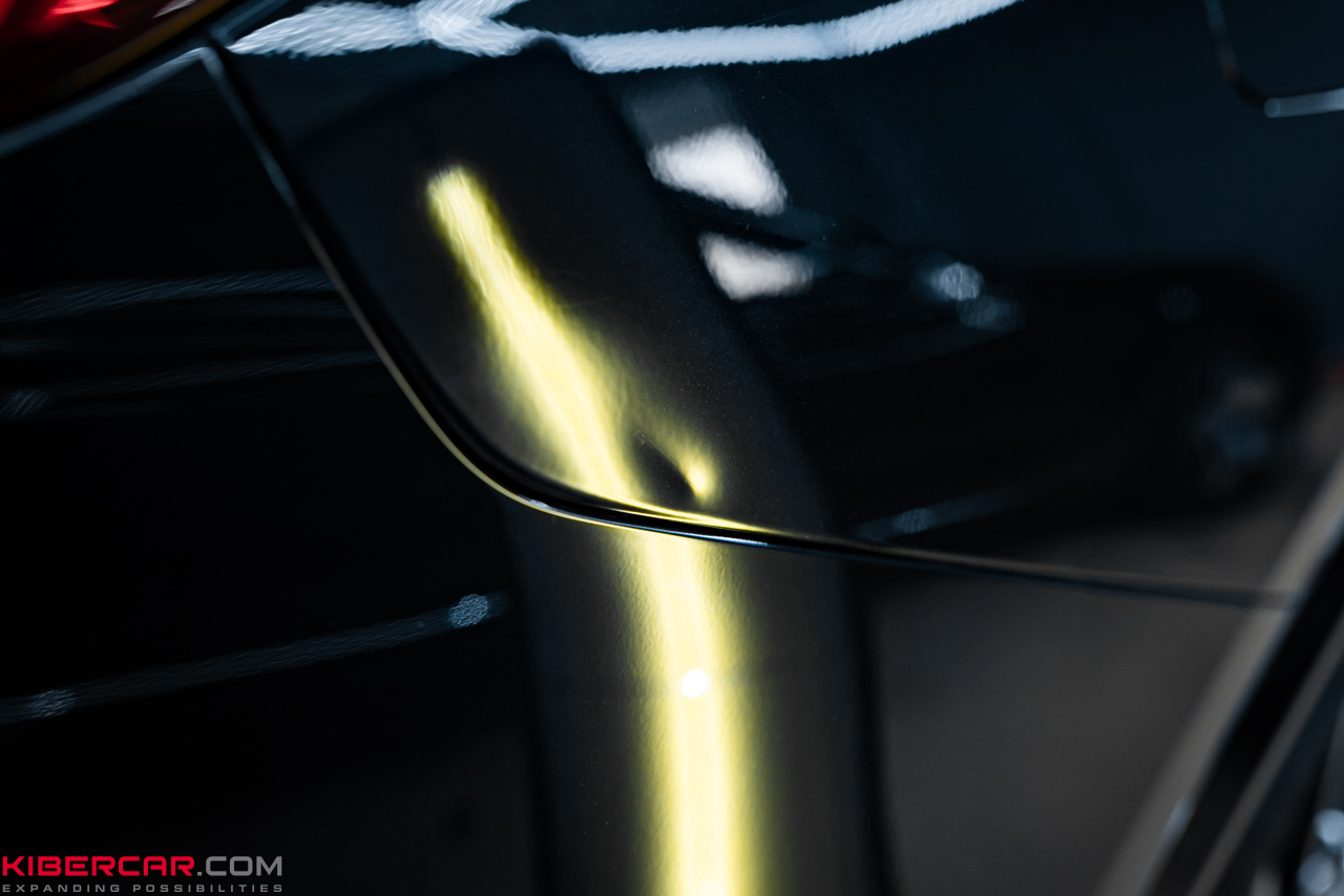 PDR включает в себя использование специальных инструментов, с помощью которых мастер постепенно и аккуратно выдавливает вмятину изнутри. Учитывая сложность доступа к зоне повреждения, требовалась максимальная точность движений и контроль давления на металл, чтобы не нарушить стыковочные швы элементов кузова.
