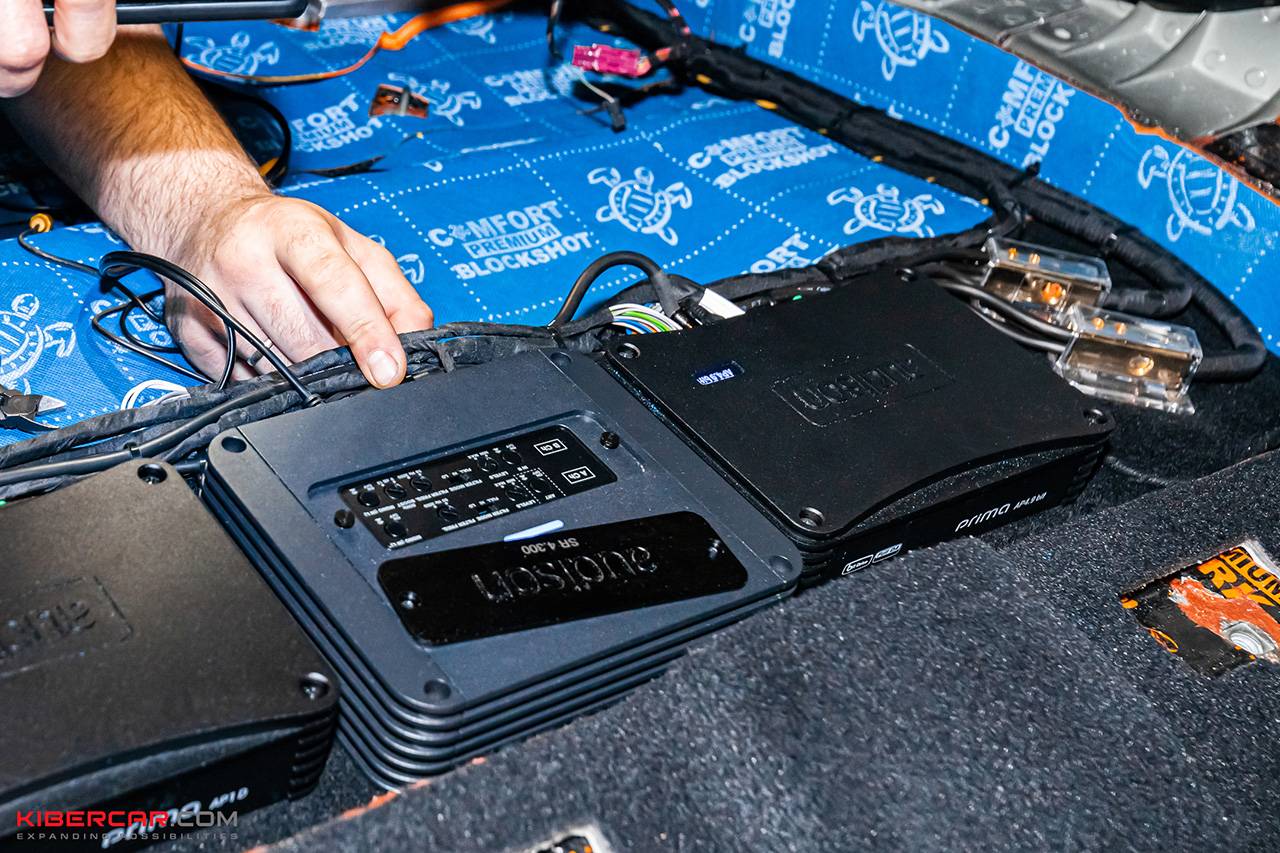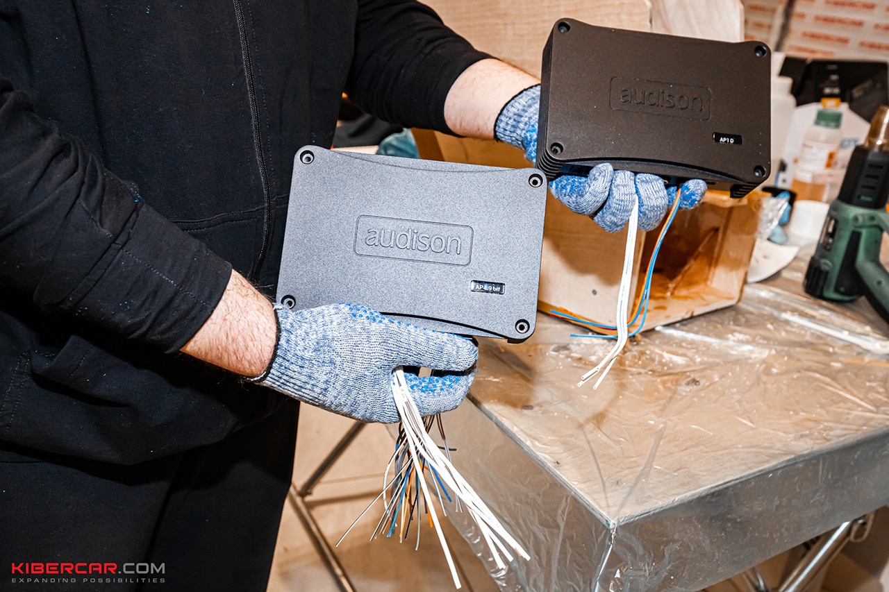 От Audison мы устанавливаем три усилителя и сабвуфер, а от AMP – динамики высоких, средних и низких частот. В совокупности вы получаете гарантированный безупречный звук и надёжность одних из лучших производителей автомобильной аудиопродукции.