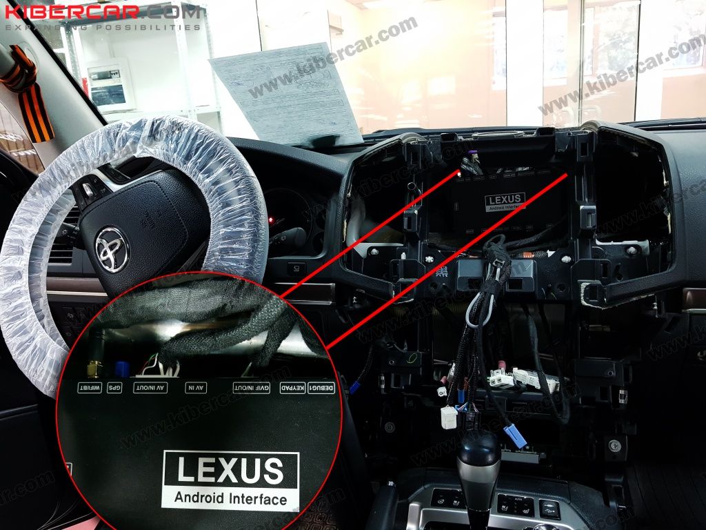 Блок интерфейса устанавливаем во внутреннюю часть центральной консоли. Подключение производится разъем в разъем к штатному головному устройству.