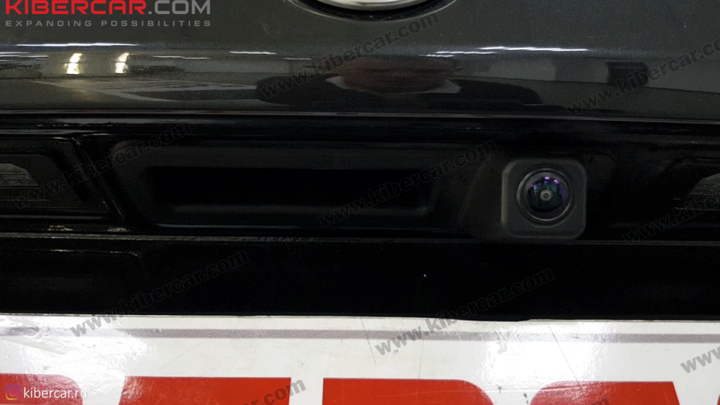 Обращаем внимание на заднюю камеру. Нам достался BMW с уже готовой КЗВ, но ее пришлось заменить, так как оригинальные коннекторы никак не подвести к системе 360°. Клавиша и ручка от багажной двери те же. Поменялось лишь устройство.