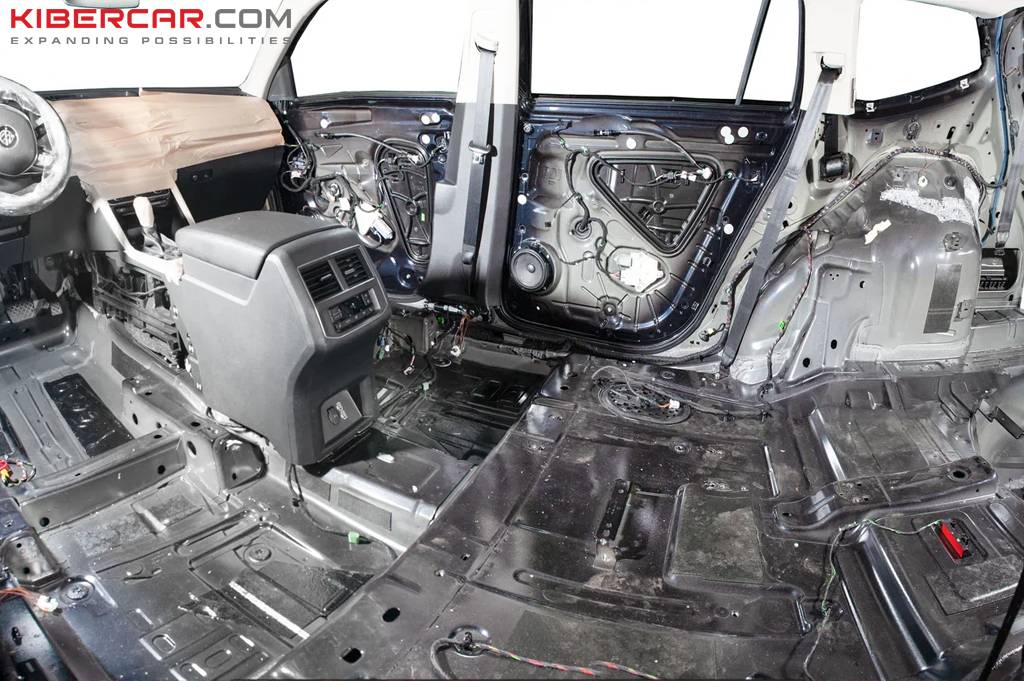 Работа начинается с защитной оклейки кузова. После этого мастера полностью разбирают салон, включая снятие напольного ковролина и обивки потолка. Оставшиеся элементы салона мы защищаем от механических повреждений чехлами из плотного и прочного пластика. Разборка проводится при помощи специальных специнструментов, которые предотвращают появление царапин и потертостей.