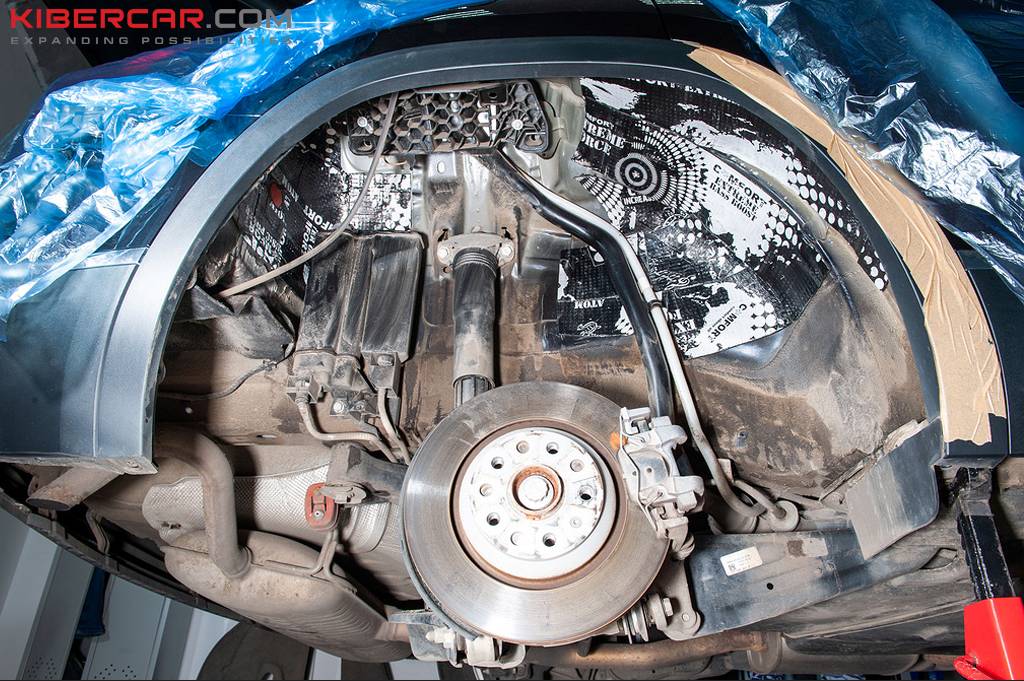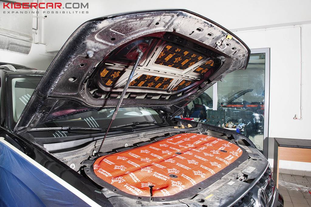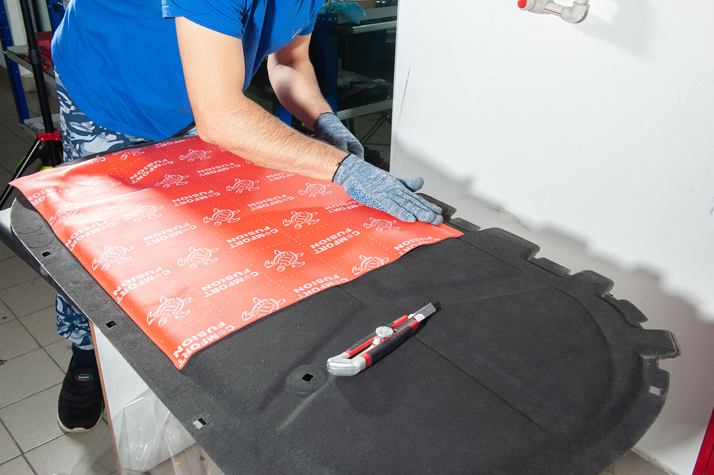 После этого специалисты поэтапно укладывают материалы Comfort Mat на металл дверей, пола, внутренней части крыльев, пола багажного отсека и колесных арок. Также мы укладываем слой шумки на крышку багажника и капот – в первом случае мы дополнительно защищаем салон от попадания внутрь дорожных шумов, во втором – до минимума снижаем слышимость мотора на максимальных оборотах.