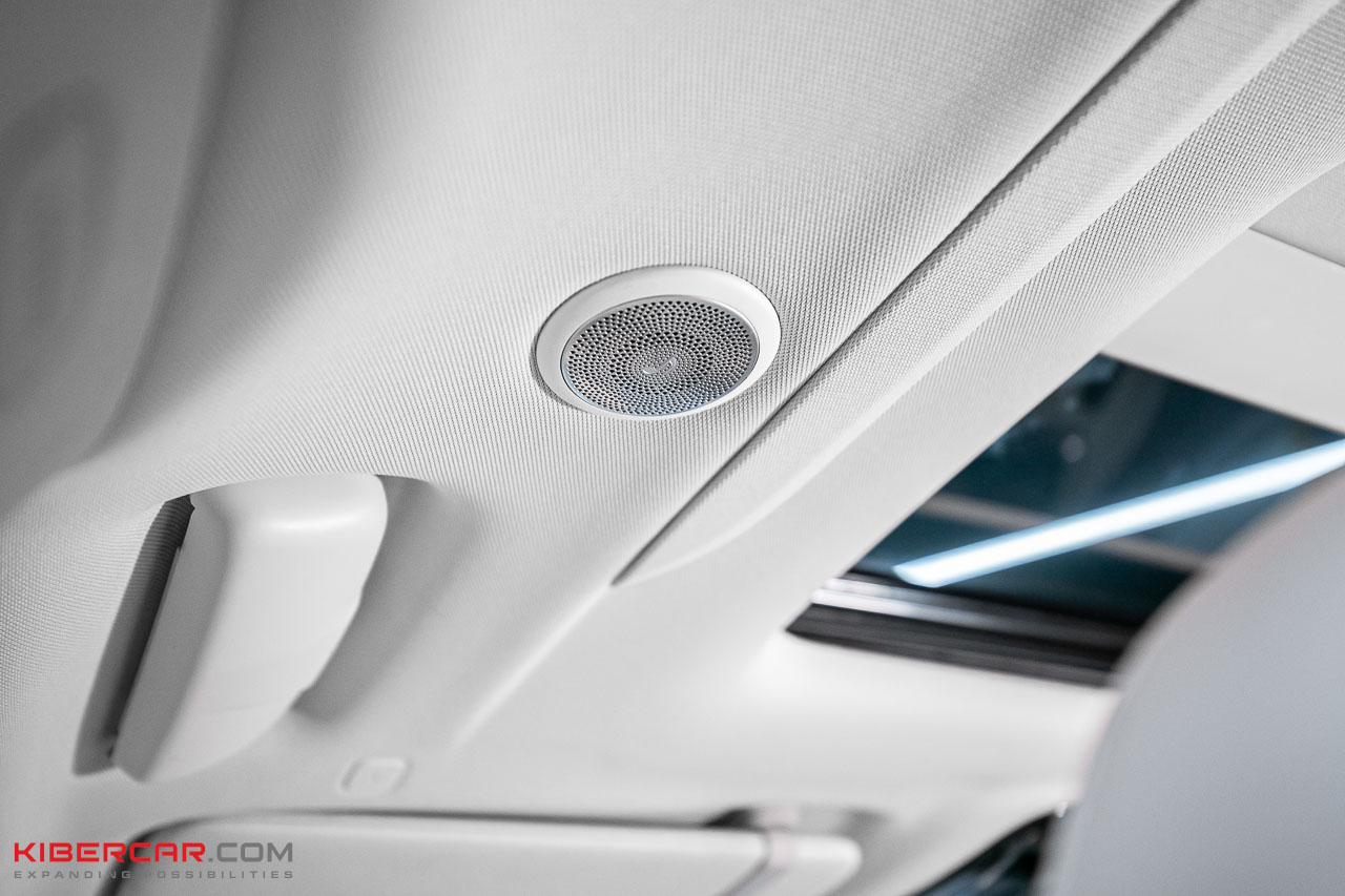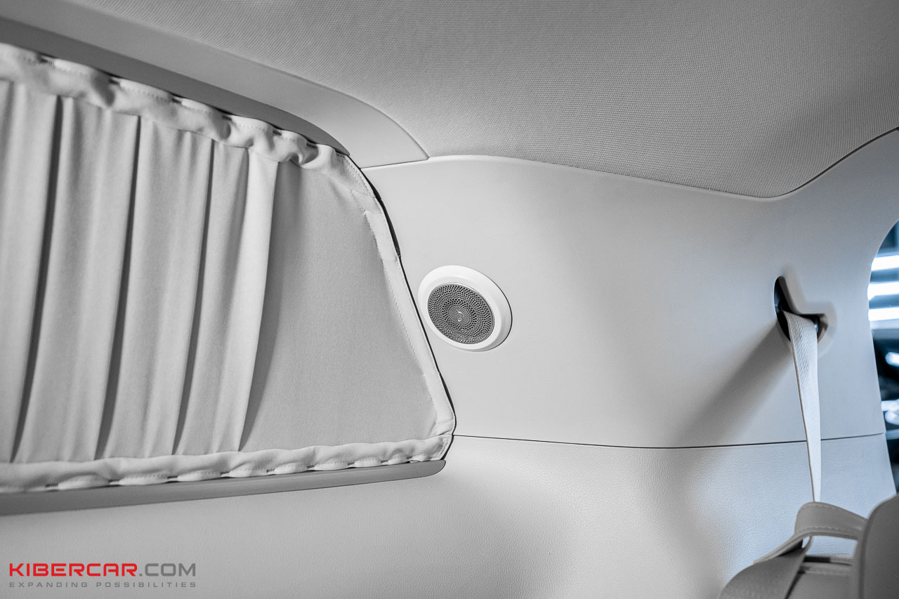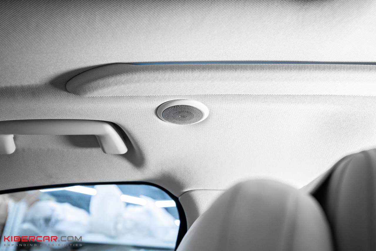 Дело в том, что значительная часть салона не занята акустикой. В штатную комплектацию входит сабвуфер, который слышат в основном задние пассажиры: до передних сидений басы почти не доходят. В торпеде располагается 2 широкополосных динамика, выполняющих функцию твитеров, в нижней части дверей – мидбасы. Также пара мидбасов установлена в сдвижных дверях, и сразу над ними – твитеры. На этом штатный комплект акустики заканчивается.
