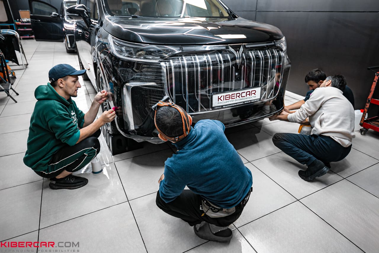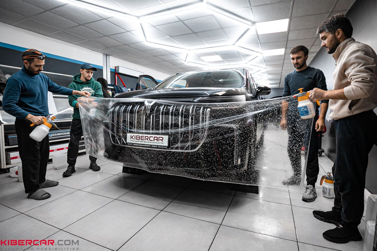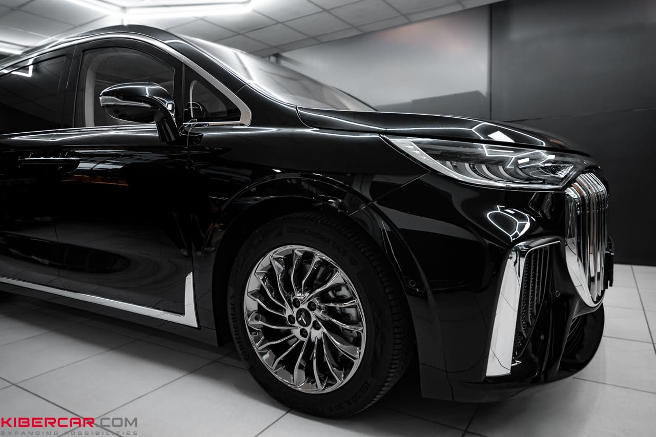 В нашем установочном центре выполняют детейлинг с оклейкой глянцевой полиуретановой пленкой. В качестве и эффективности этого тюнинга лично убедился владелец Voyah Dream. Глянцевый полиуретан обладает отличными защитными свойствами и помогает сохранить лакокрасочное покрытие в целости. Пленка не влияет на изначальный цвет автомобиля, но придает ему особый глянец и лоск, благодаря чему модель выглядит более стильно.