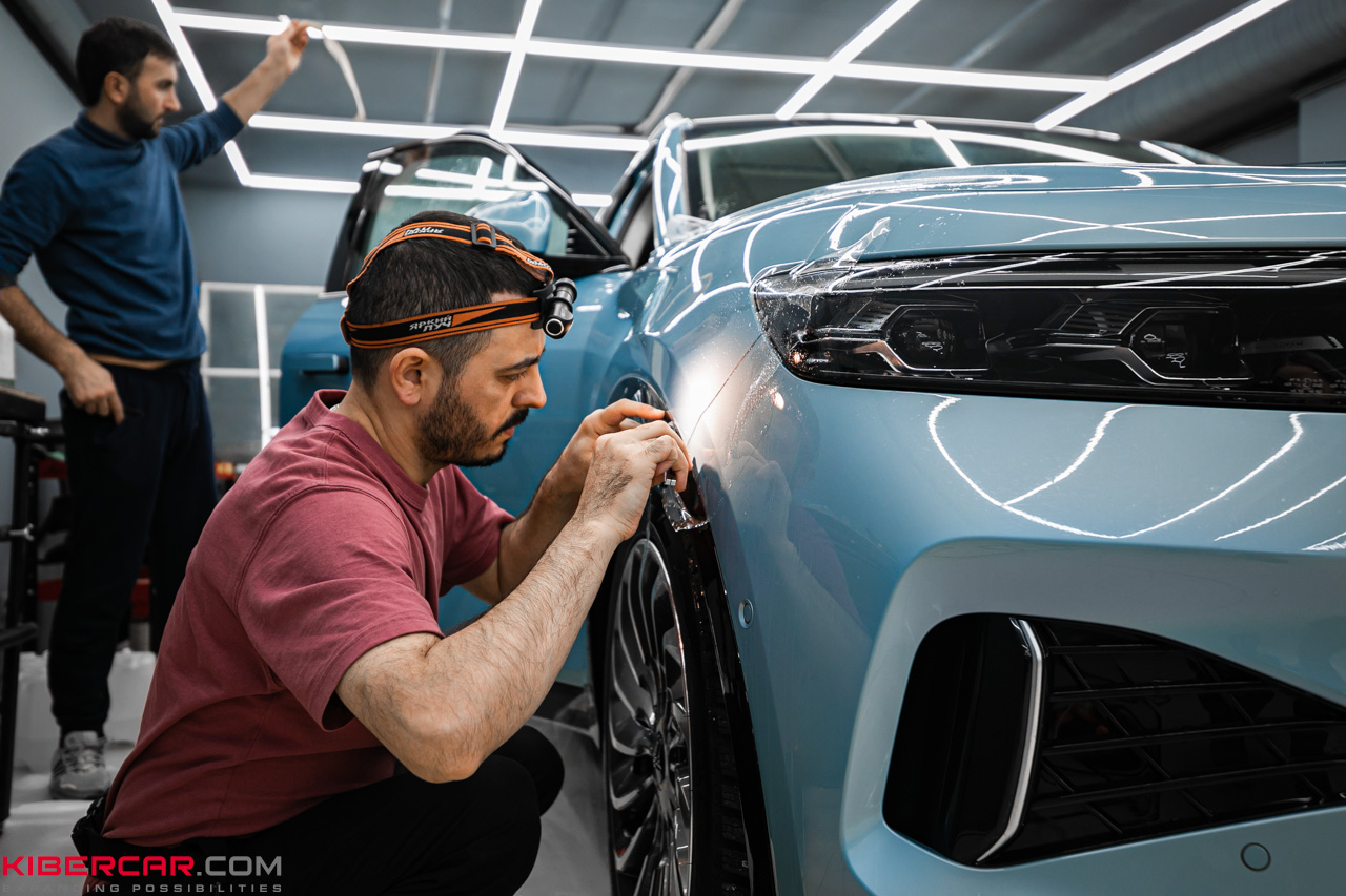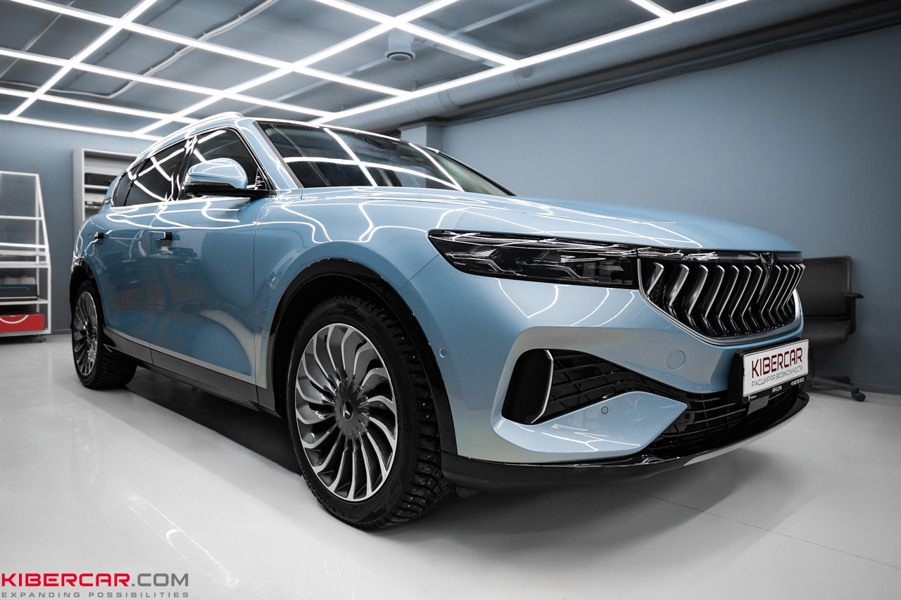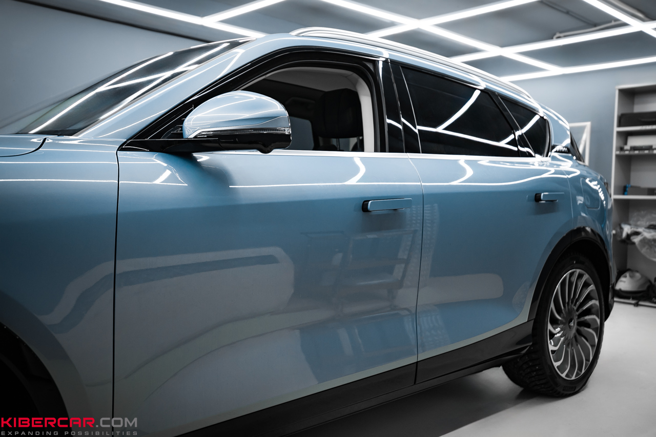 Мастера нашего установочного центра готовы выполнить детейлинг с последующей оклейкой любого авто. Владелец Voyah Free выбрал глянцевую полиуретановую пленку.