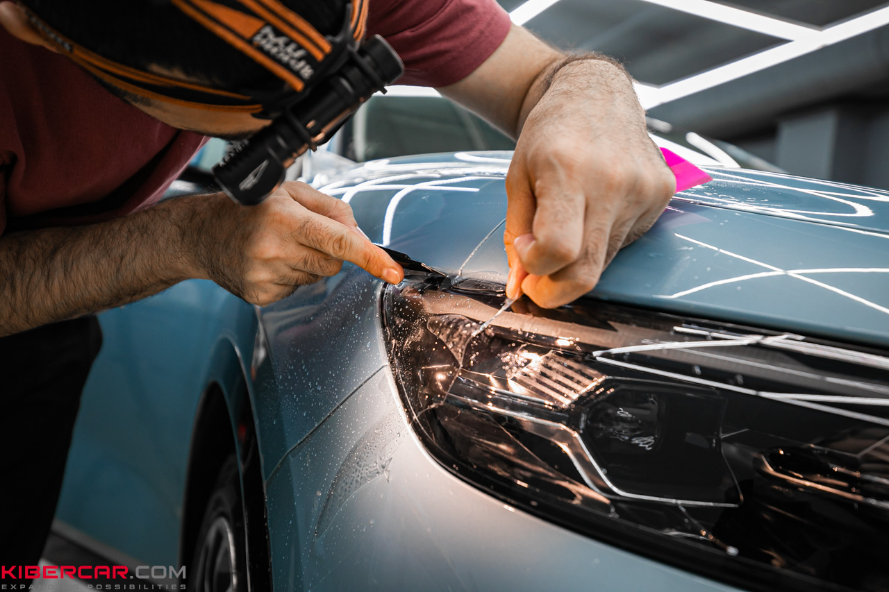 Чтобы гарантировать максимальную защиту, наша команда работает, не отступая от технологии. Прежде всего демонтируются детали, которые могут помешать оклейке, проводится тщательный детейлинг, чтобы на поверхности не осталось пыли и грязи. После этого на кузовные детали наклеивается глянцевый полиуретан. Пленка не меняет изначальный оттенок ЛКП, однако привносит особое сияние.