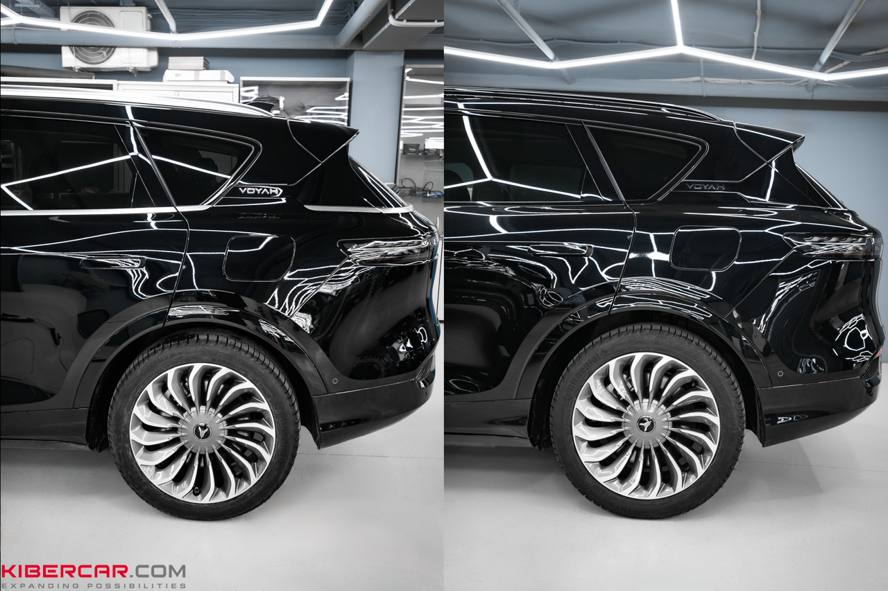 Дизайн Voyah Free – современный, но немного банальный. Именно поэтому к нам часто обращаются владельцы этой модели для проведения детейлинга. Мы предлагаем обширный перечень услуг, включая оклейку кузова пленкой, улучшение света фар, ламинацию карбоном отдельных элементов. Особой популярностью в последнее время пользуется услуга «Антихром».