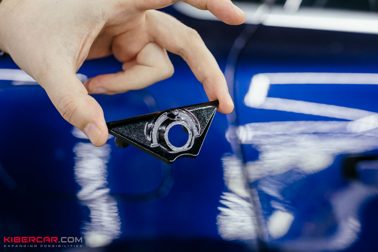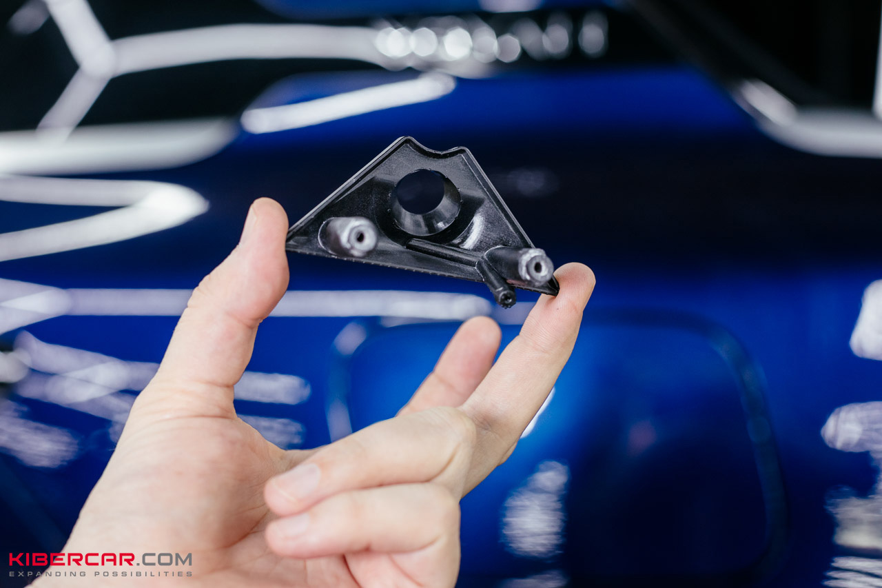 Работа по подключению системы омывания заняла немного времени. Мы демонтировали камеру переднего вида, аккуратно извлекли корпус и заменили его на новый. Основная разница между ними — в наличии отверстия, которое точно направлено на линзу камеры.