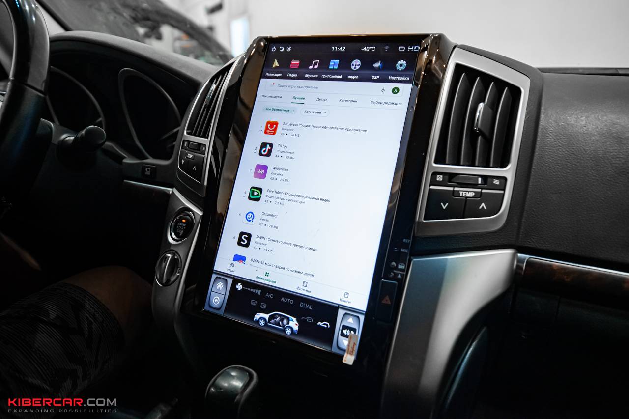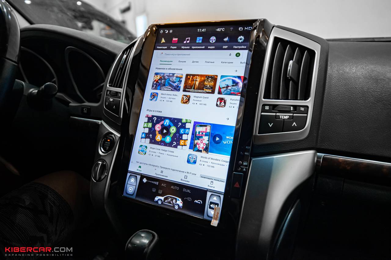 В наш установочный центр обратился владелец Toyota Land Cruiser 200, недовольный мультимедийными возможностями штатного головного устройства. Действительно, изначальный функционал не столь широк. Чтобы усовершенствовать автомобиль, вместо старого ШГУ мы установили новое – с рабочим дисплеем в «стиле Tesla», под управлением ОС Android.