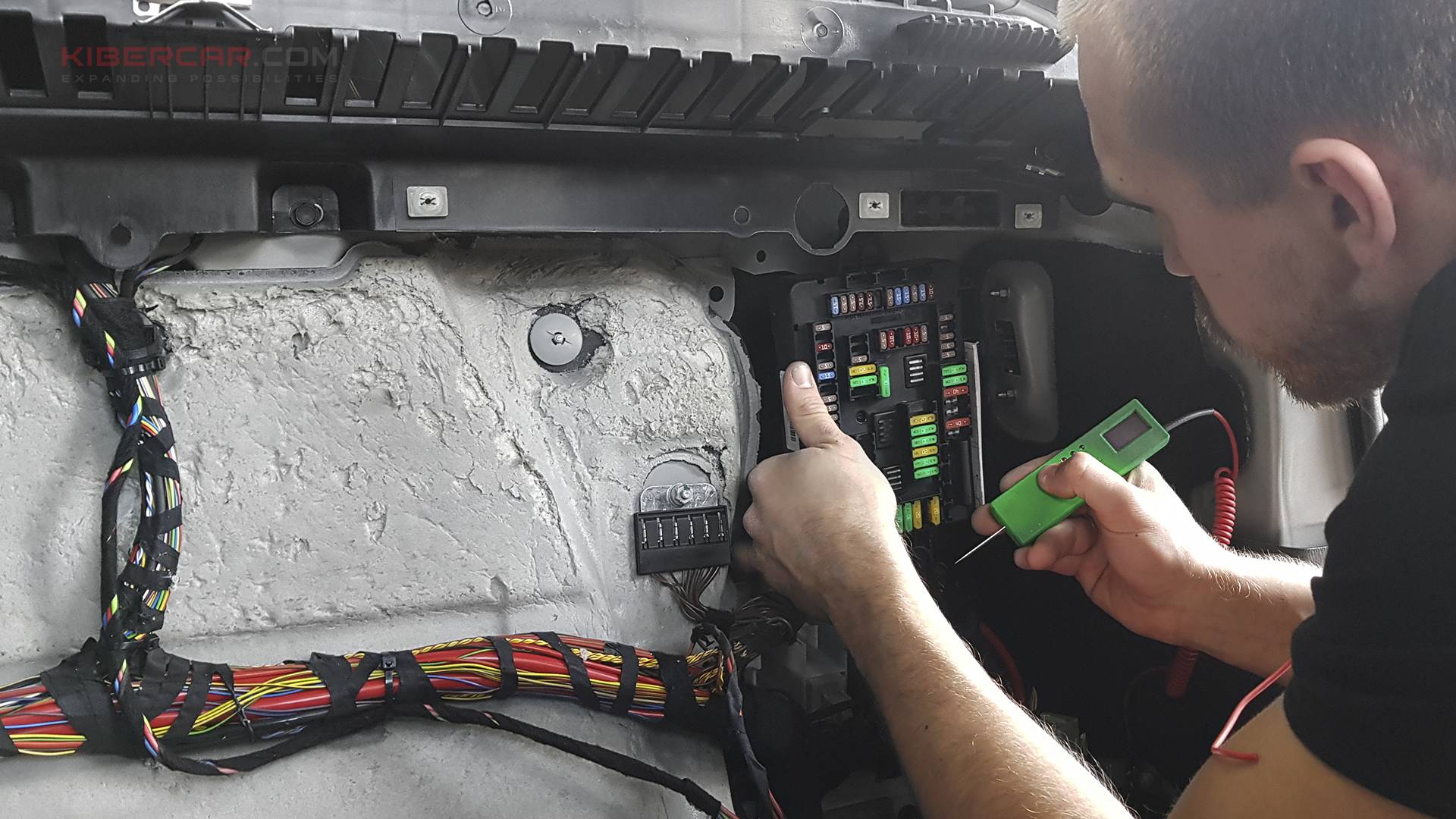 И без того комфортный и эстетичный BMW X6 может стать куда более желанным к посещению, и мы готовы это доказать. Этот автомобиль стал первым, на котором мы произвели установку так называемого «звездного неба». Устройство само по себе довольно простое лишь небольшой комплект светодиодных нитей и контроллеров для управления режимами освещения, однако имплементация решения в салон – довольно кропотливое занятие.