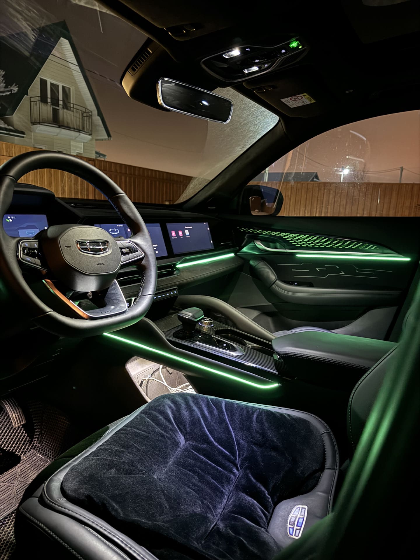 Установил подсветку салона, управлять цветом и силой свечения можно с центрального монитора(атмосферная подсветка). Ранее в личном пользовании подсветку не имел, думал что пустая трата денег. Сейчас, установил, езжу и очень нравится, постоянно обращаю на нее внимание и думаю, как красиво все же, стало очень атмосферно.