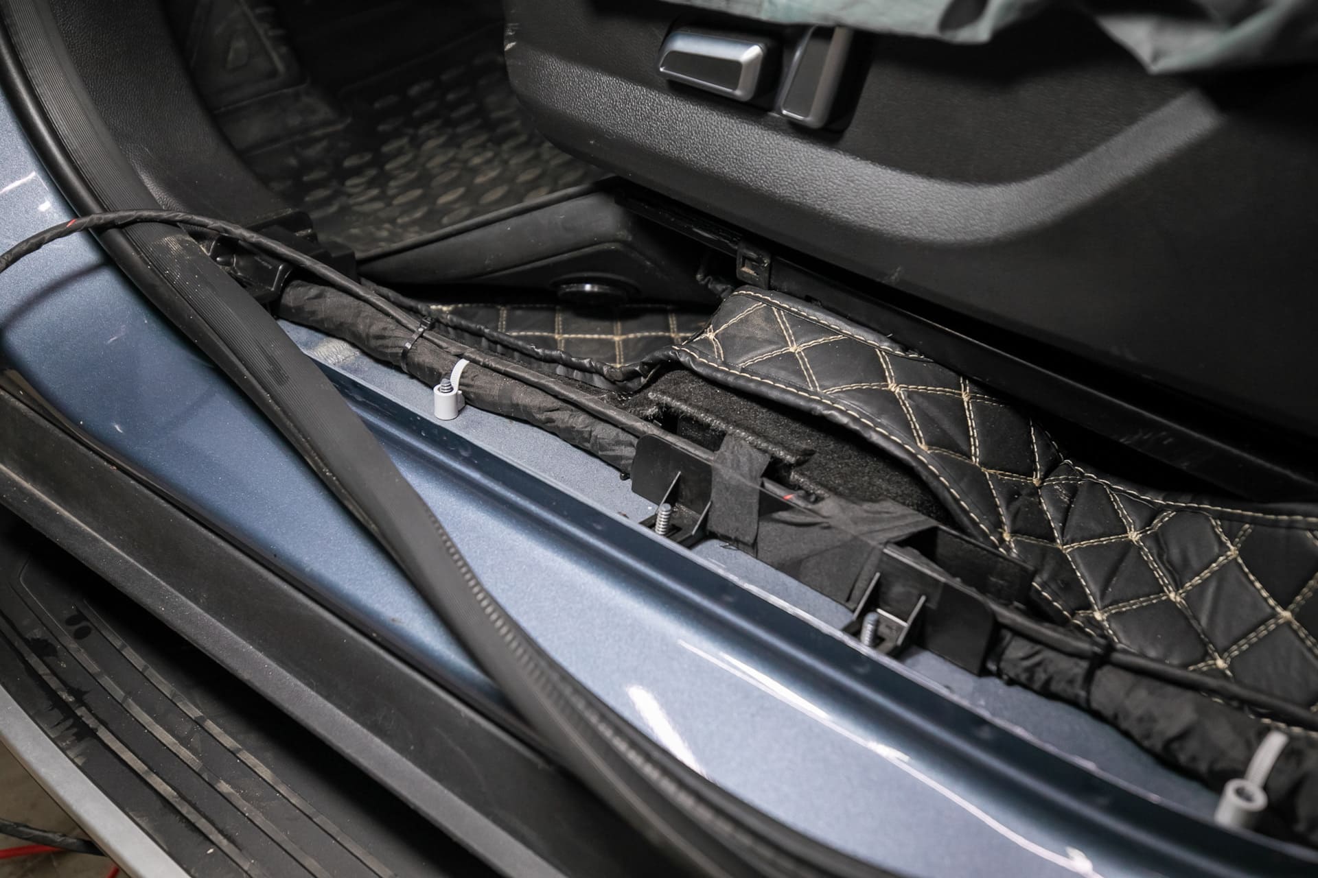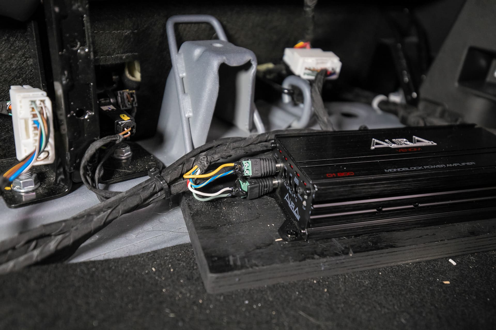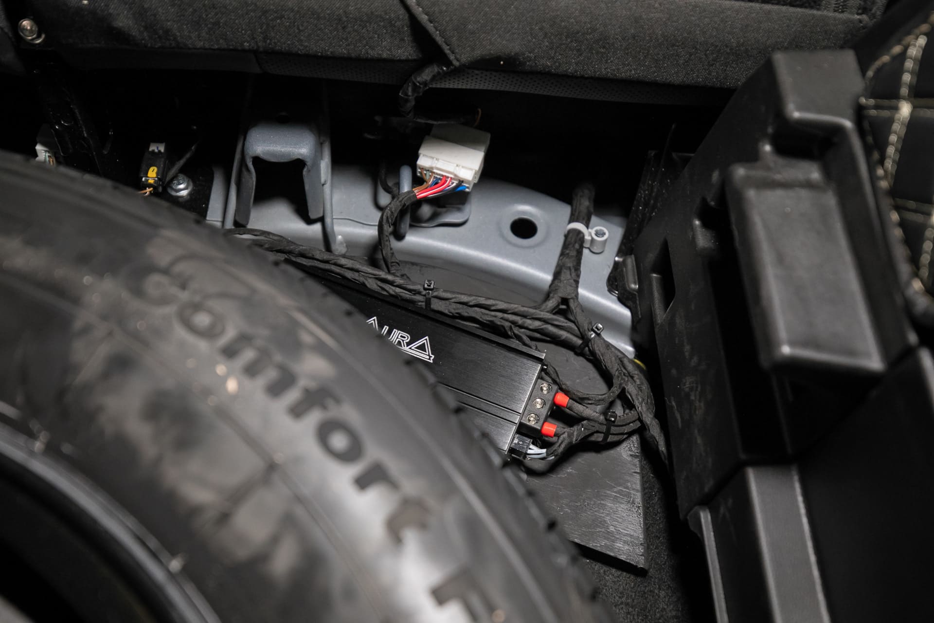 Честно говоря, в области автозвука я тот еще «эксперт». Мне казалось, что парни вынут штатный саб и через усилок подключат новый саб в те же разъемы. Но, нет, кидали проводку через весь салон к аккумулятору. Тоже заняло время.
