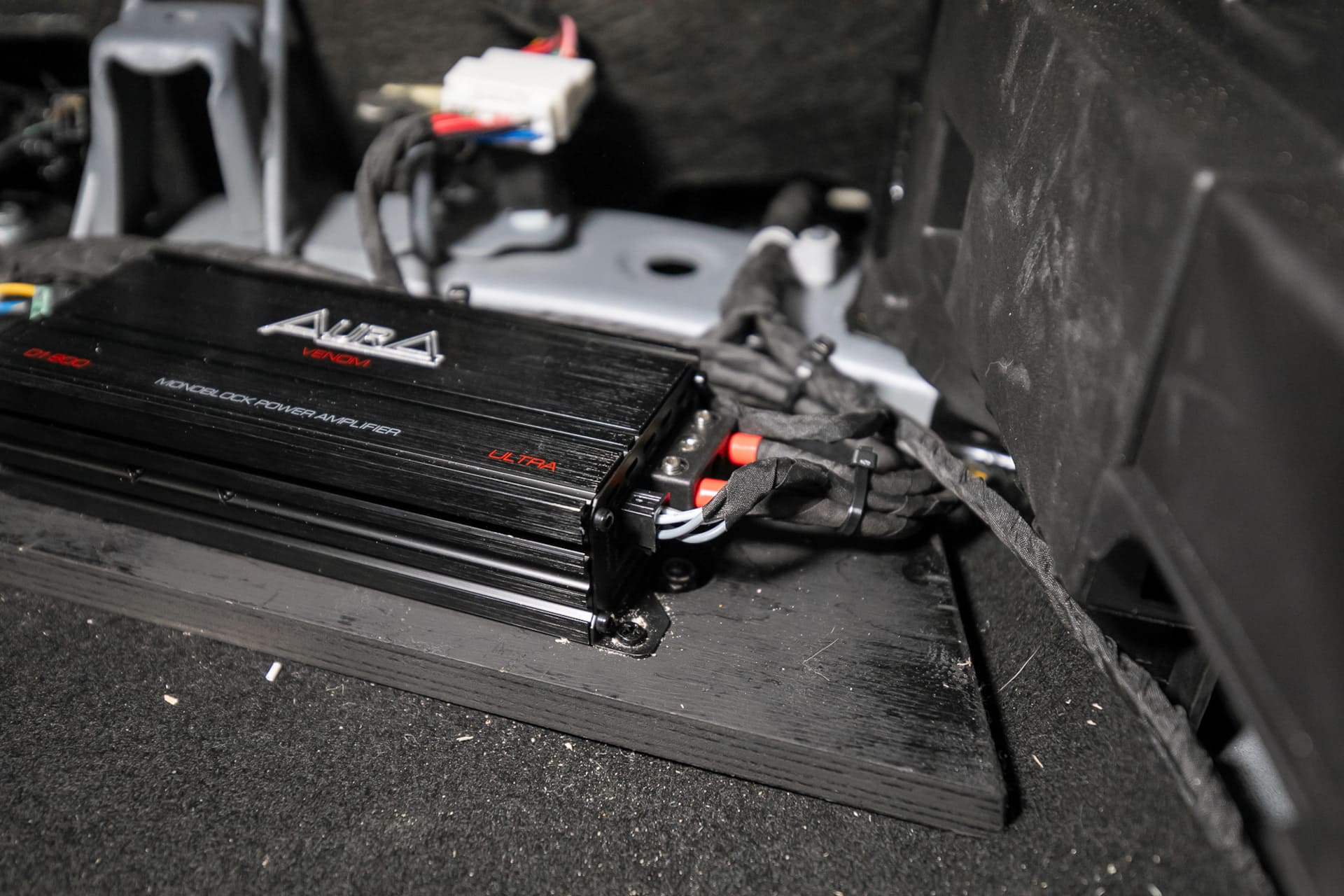 Касательно крепления усилителя имел наглость задать бестактный вопрос: не собираются ли они его крепить усилитель к кузову саморезами? Ну, мало ли! :-))) Конечно же нет. Под усилок также была изготовлена площадка с индивидуальными размерами и она крепится к кузову автомобиля в штатные места, т.е. там, где уже заводом-изготовителем предусмотрены отверстия и болты.