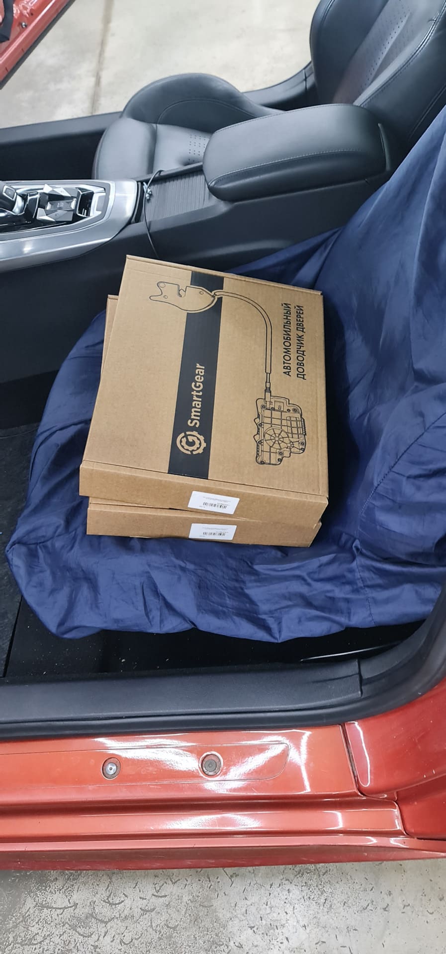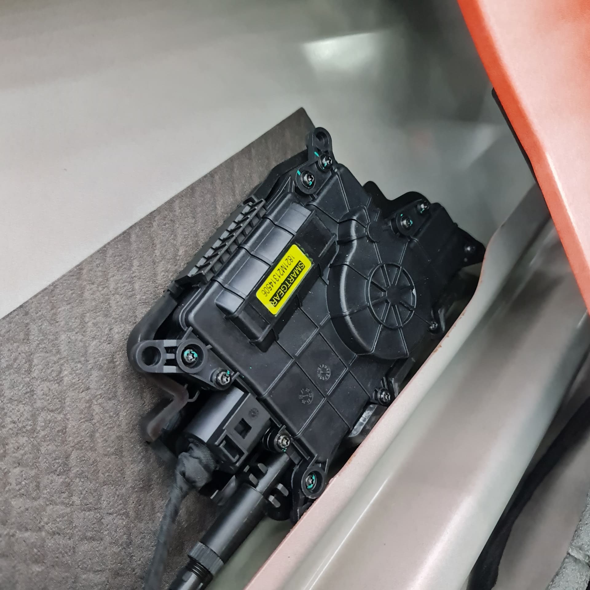 Пластина из дюрали и нержавейки с язычком толщиной всего 5мм в сборе устанавливается между дверью и замком болт-он, а гериетичный редуктор уже в сборе с электроникой и датчиком движения. Нужно только 12в подключить.