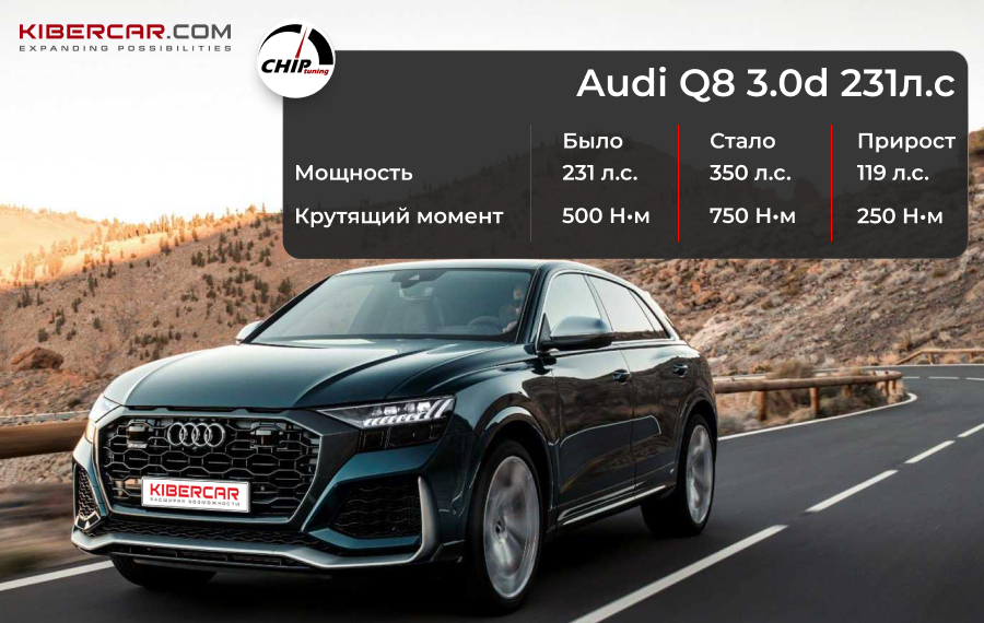 | Q8 | 3.0TFSI 340л.с | 340 410 +70 | 500 620 +120 |