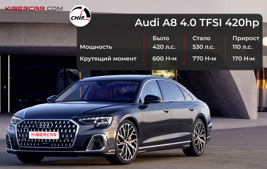 | A8 | 4.0 TFSI 420hp | 420 530 +110 | 600 770 +170 |