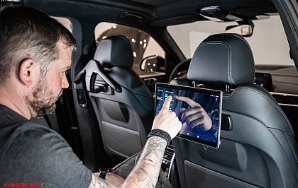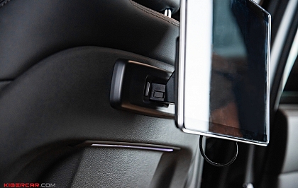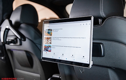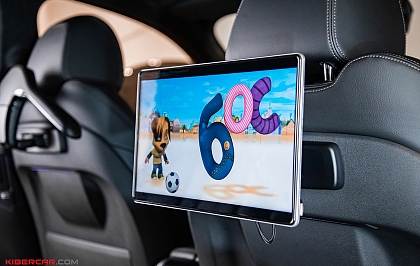 Крепления позволяют разместить пассажирские мониторы с диагональю 11.6 и 12 дюймов. Они имеют сенсорное управление. Внешний вид мониторов органично дополняет интерьер салона BMW.