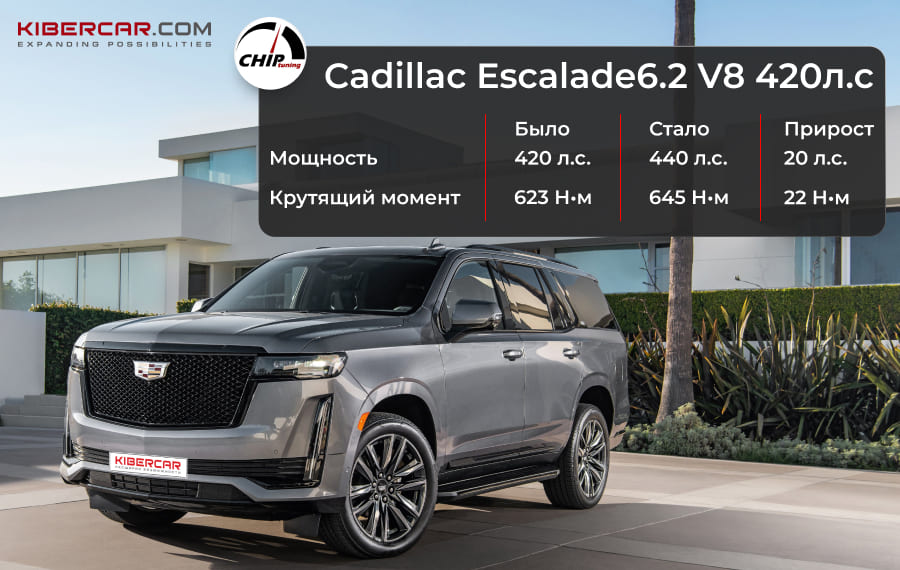 | Cadillac Escalade | 6.2 V8 420л.с | 420 440 +20 | 623 645 +22 |