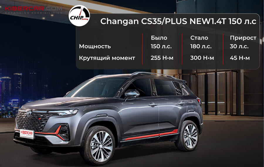 | Changan CS35/PLUS NEW | 1.4T 150 л.с | 150 180 +30 | 255 300 +45 |