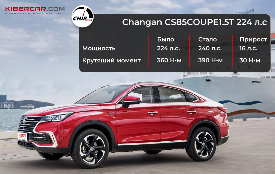 | Changan CS85COUPE | 1.5T 224 л.с | 224 240 +16 | 360 390 +30 |