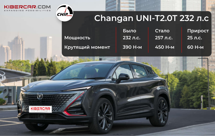 | Changan UNI-T | 2.0T 232 л.с | 232 257 +25 | 390 450 +60 |
