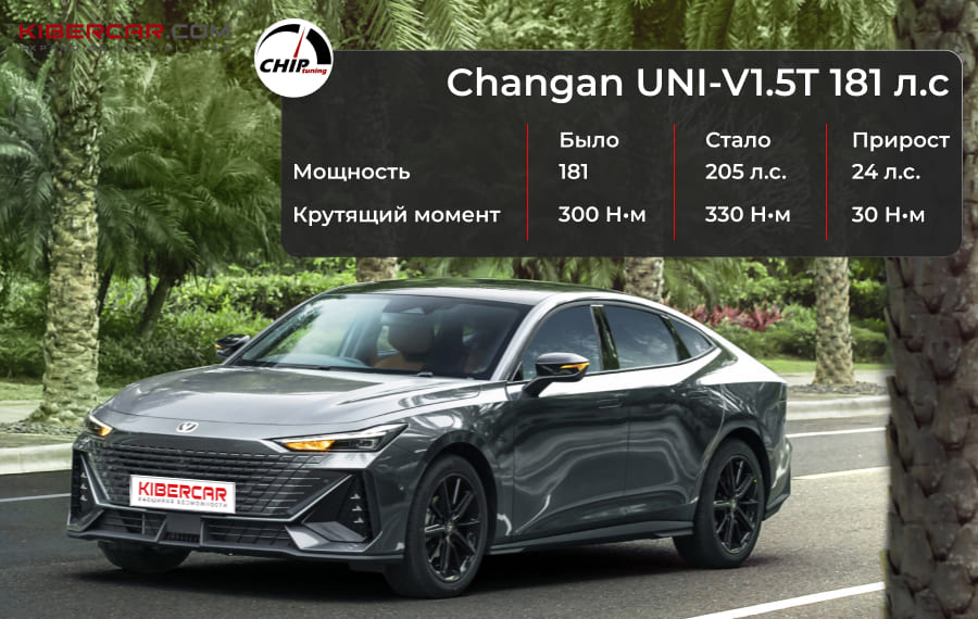 | Changan UNI-V | 1.5T 181 л.с | 181 205 +24 | 300 330 +30 |