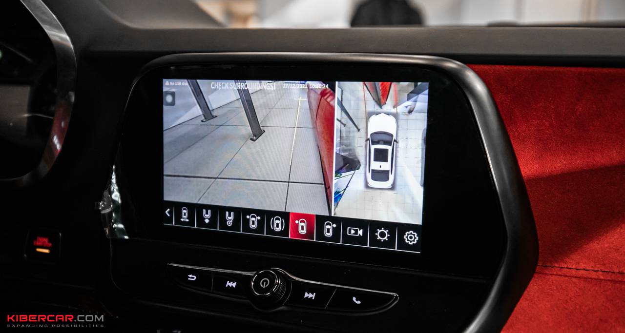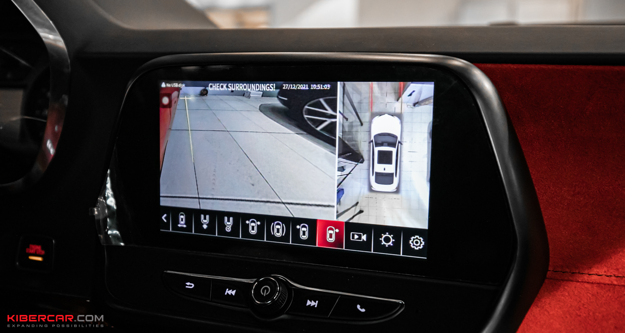 Благодаря новой системе, водитель лучше контролирует окружающее пространство и свободно маневрирует на сложных участках или во время парковки, не опасаясь неприятных неожиданностей. За полный обзор отвечают четыре камеры, установленные следующим образом: камера заднего вида – над номерным знаком, боковые камеры – на зеркалах, передняя – над решеткой радиатора.