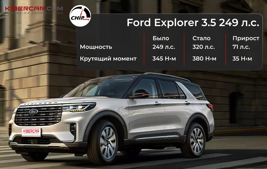 | Ford Explorer | 3.5 360 л.с. | 360 400 +40 | 475 556 +81 |