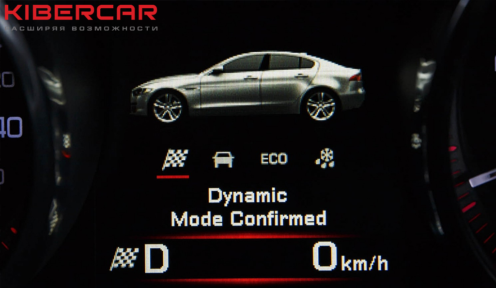 Режим Dynamic — изначально скрытый режим в конфигурации автомобиля, который позволяет раскрыть новые динамические качества вашего Jaguar. При включении режима приборная панель меняет цвет на красный.