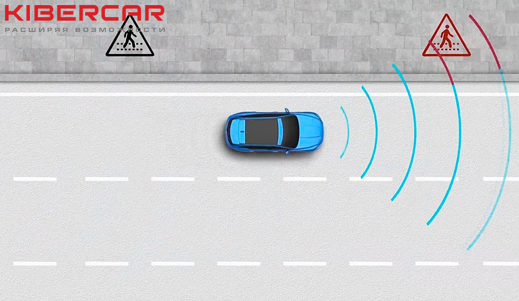 – Адаптивный ограничитель скорости использует данные системы распознавания дорожных знаков для автоматической регулировки скорости движения. Если система обнаруживает, что автомобиль движется с превышением допустимой скорости, например, после въезда в зону с более жестким ограничением, педаль акселератора будет блокирована, а скорость плавно снижена. Для незамедлительного снижения скорости водитель может затормозить.